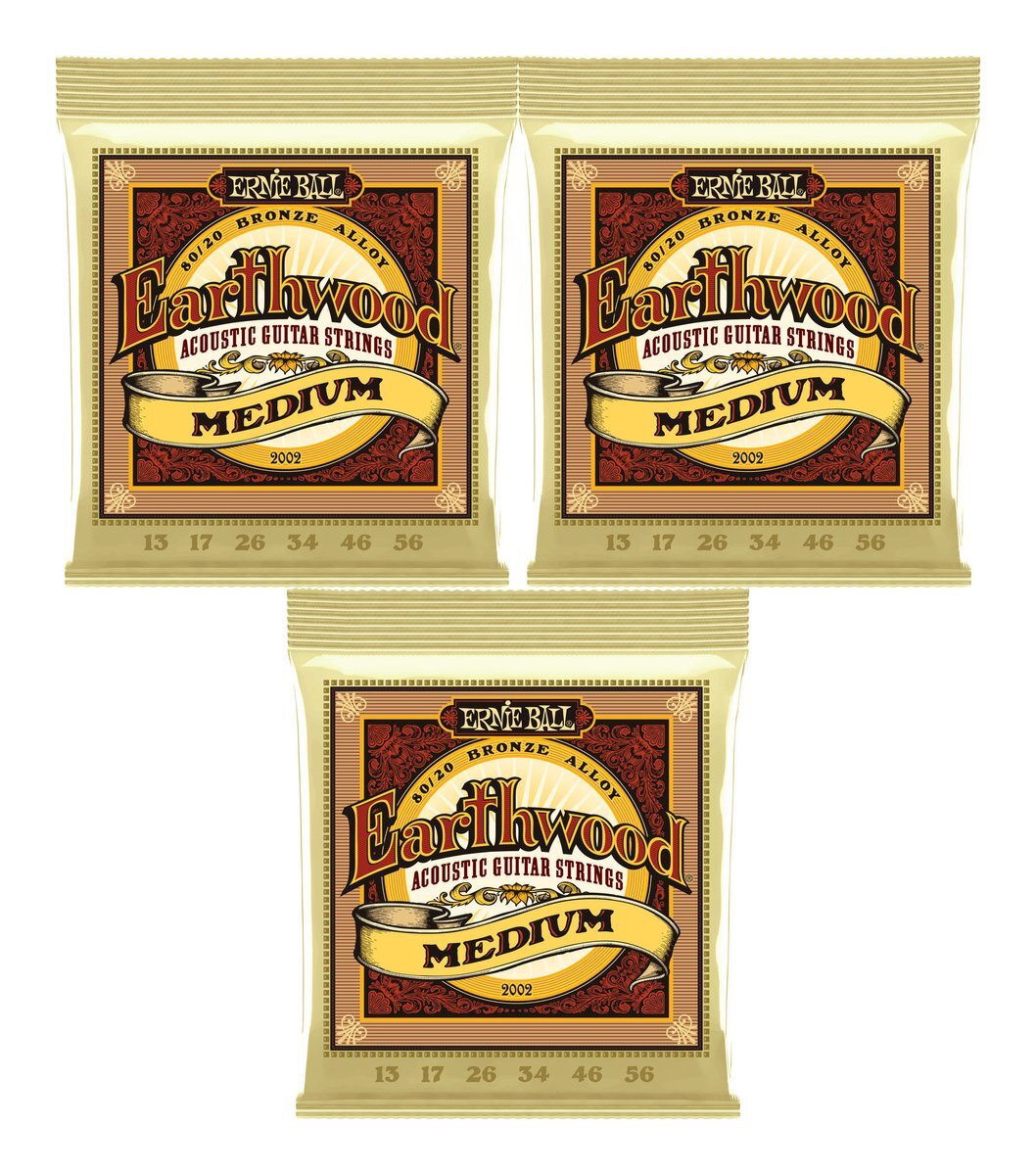 即決◆新品◆送料無料ERNIE BALL 2002/3セット [13-56] Medium Earthwood 80/20 Bronze アコースティックギター弦/メール便