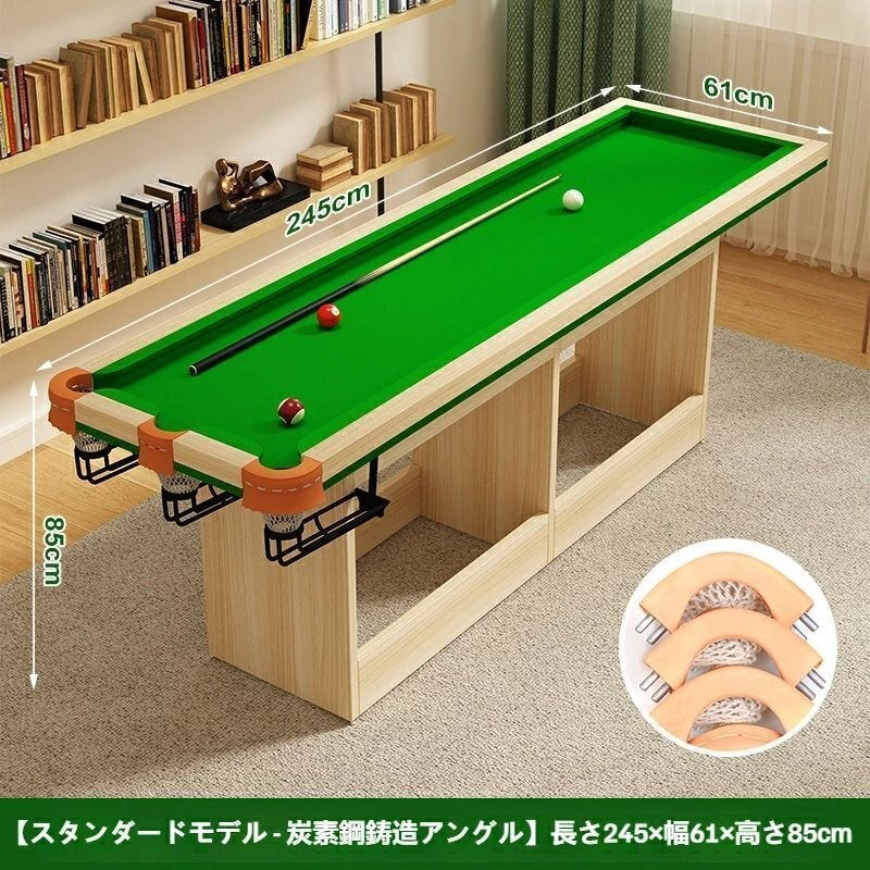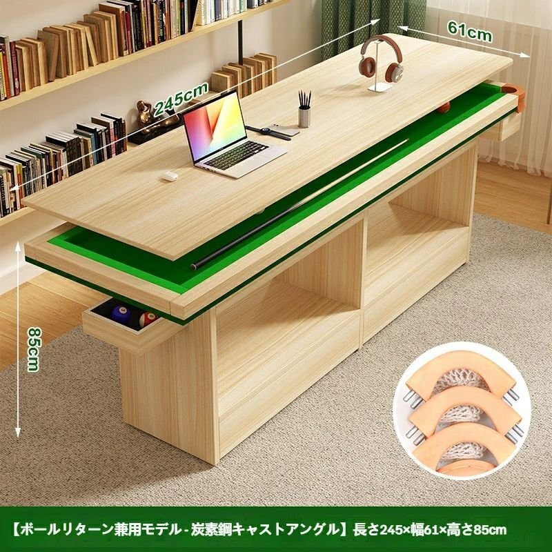 □商品詳細家庭用業務用ビリヤードテーブル 【選べるサイズ】 2.1m:約210×61×85cm 2.45m:約245×61×85cm 高さ調整可能なモデルもございます。 【選べるラシャカラー】
