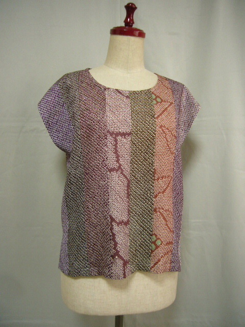 | 【特価】着物リメイク★絞り色々★ブラウス★身幅52位★茶~紫系★リメイク工房 | ||||||||||||||||||