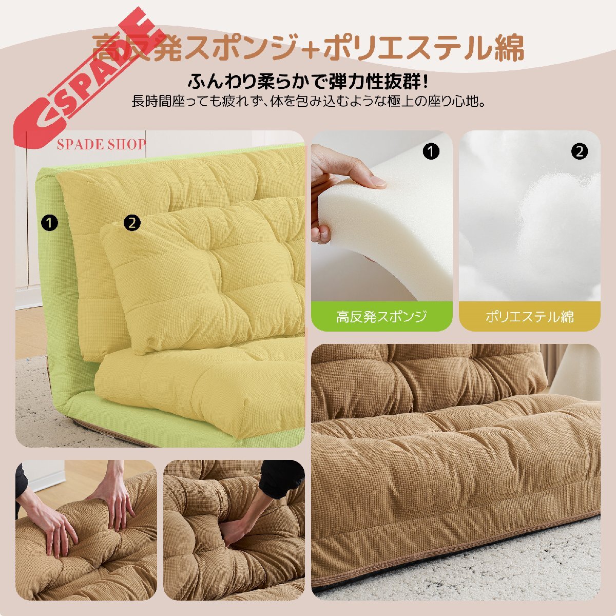 • ★【安定性と快適性を兼ねた構造】座面にはもっちりふかふか圧倒されそうなボリューム感を使い、適度な弾力とクッション性を持たせながら、ベッドとしての使用でも約150kgの耐荷重があるので安全にご使用いただけます。女性の方でもらくらく移動可能。