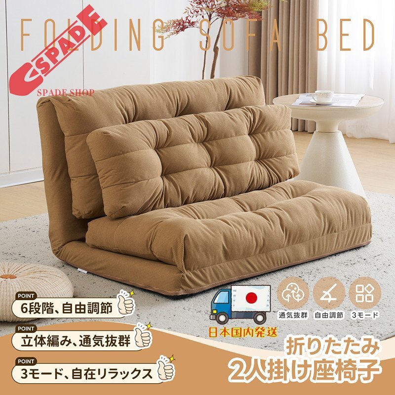 【国内発送】ソファーベッド ソファベッド ローソファー 2人掛け マルチに使える3WAY 幅108cm 6段階リクライニング クッション付き枕付き