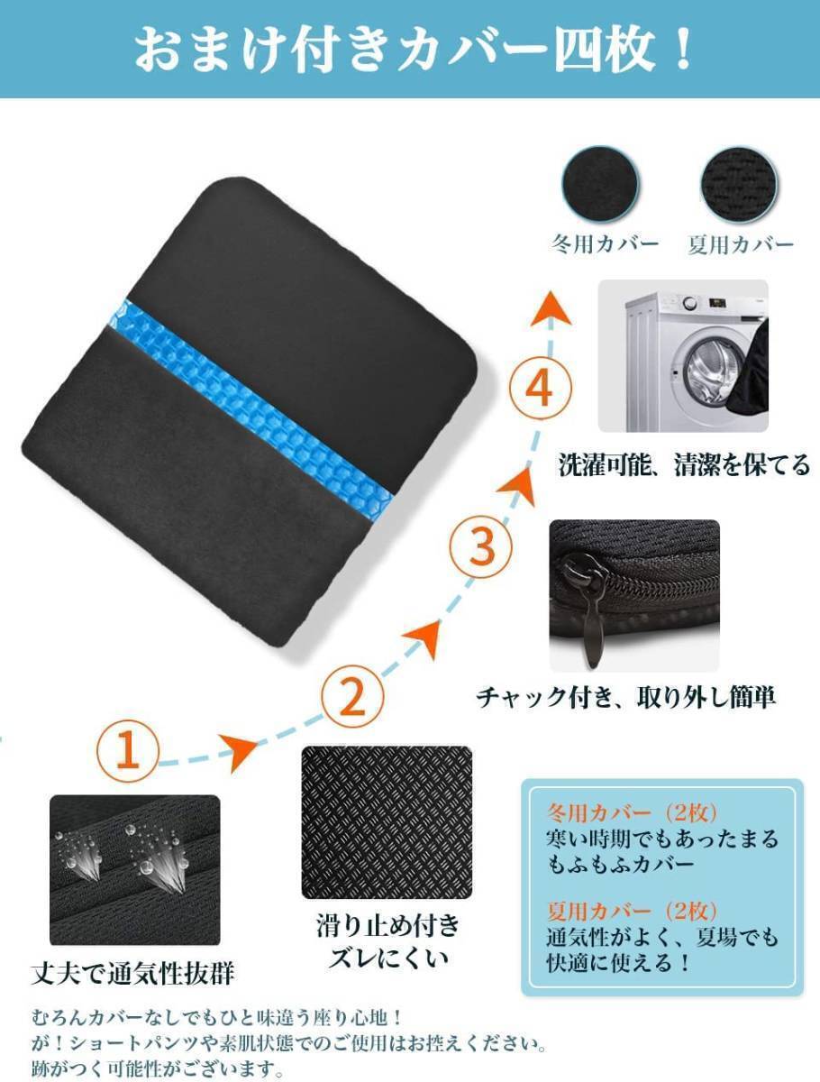 夏用カバーと冬用カバーそれぞれ二枚付属。カバーは簡単に取り外して洗える、いつも清潔に保つ。カバーの裏面に滑り止め付き、ズレにくい。