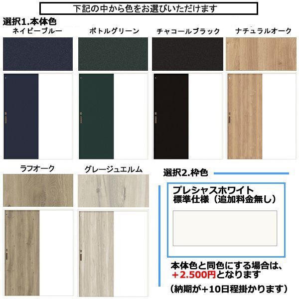 ○ トステム (LIXIL) の室内建具 トイレ 片引き戸 ラシッサD ヴィンティア ○ デザインLAA ○ ノンケーシング ○ 表示錠・明かり採り付き 標準仕様 【室内建具 片引き戸 必須選択項目】 ・ 本体色 ・ 枠色 ※標準はプレシャスホワイトです。その他は追加料金が掛かります ・ サイズ ・ 引手色 ・ 枠幅(奥行) ・ 引込勝手 ・ 敷居(下レール) その他オプション (追加料金は画像をご確認ください) ・ シングル又はダブルソフトモーション ・ 上吊へ変更 ---------------------------------- ※サイズが5種類ございます。ご希望のサイズをお知らせください。 (高さは、H2023のみとなります) W1188 W1324 W1454 W1644 W1824 ---------------------------------- * 同時に複数セット、お買上げ頂けますと、送料の値引を致します。 違うサイズ(違う種類)との組合せでもOKです、是非お問合せ下さい。 |