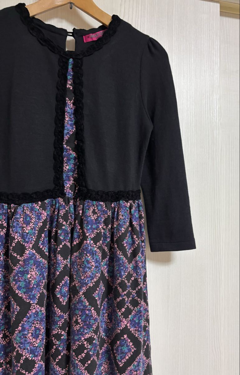 ワンピースにカーディガンを合わせたようなドッキングデザインが可愛い◎秋冬向けの温かみのあるお素材です。