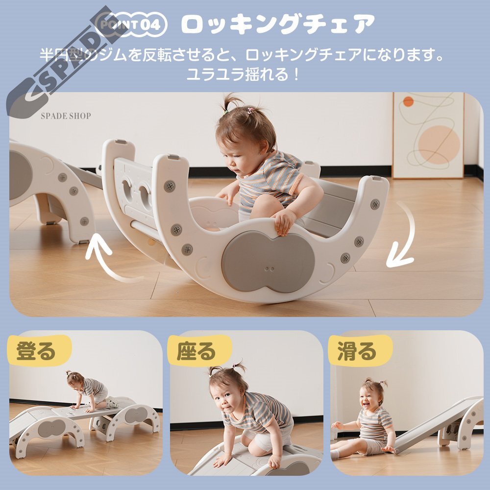 • 【ロッキングチェア】半円型のジムを反転させると、ロッキングチェアになります。ユラユラ揺れる!