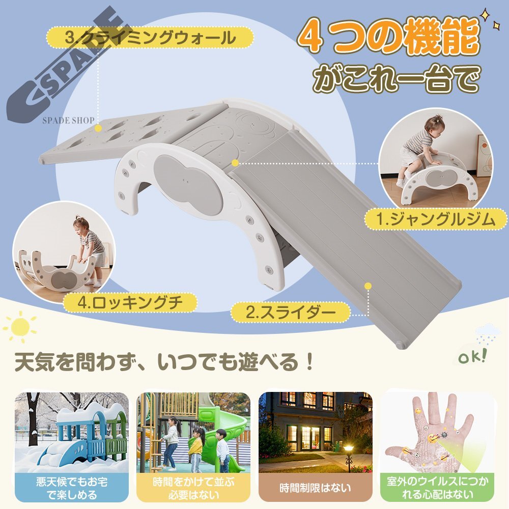 • 【ジャングルジム】自分の力で登ったり下りたり室内でも身体を動かして楽しめる。お子さまの自立心と運動能力を高めるために開発されました。集中力を高め、四肢の協調性を向上させ、バランス感覚を鍛えます。PVC製滑り止めカバー 安全感アップ  鋭い角がなく、表面をツルツルに  スライダーを置くと、指を挟まないよう隙間がないように、二段目の階段は動かせる設計です。