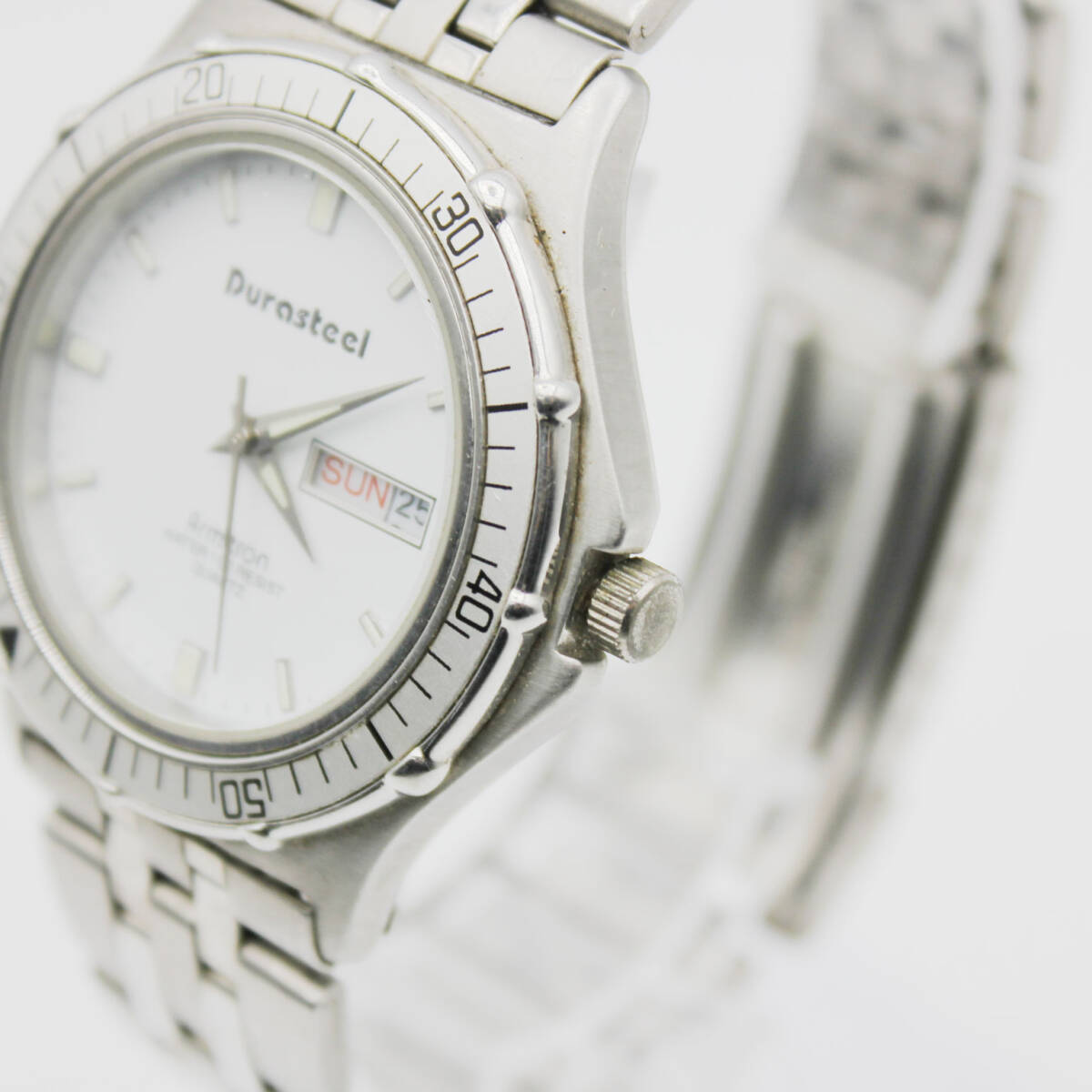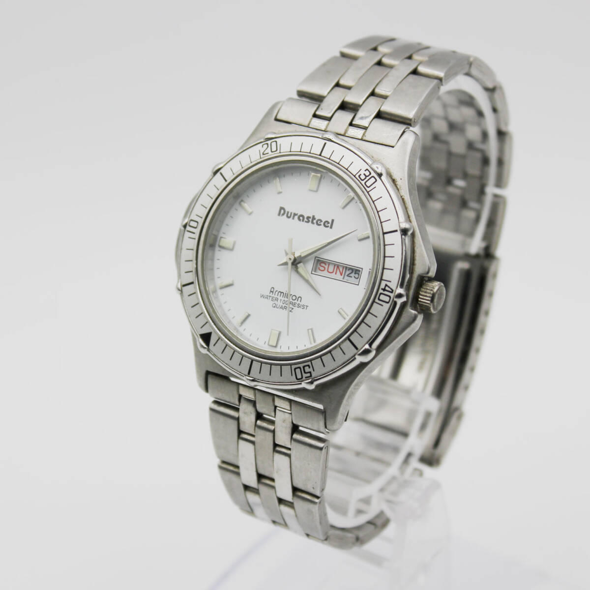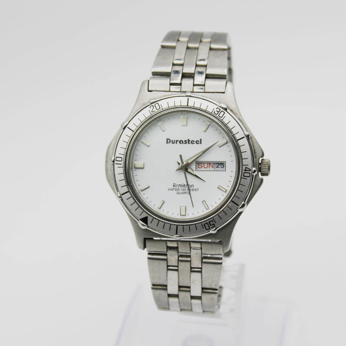 W251031-33 Durasteel Armitron メンズ腕時計 クォーツ デイデイト ジャンク 文字盤ホワイト シルバー