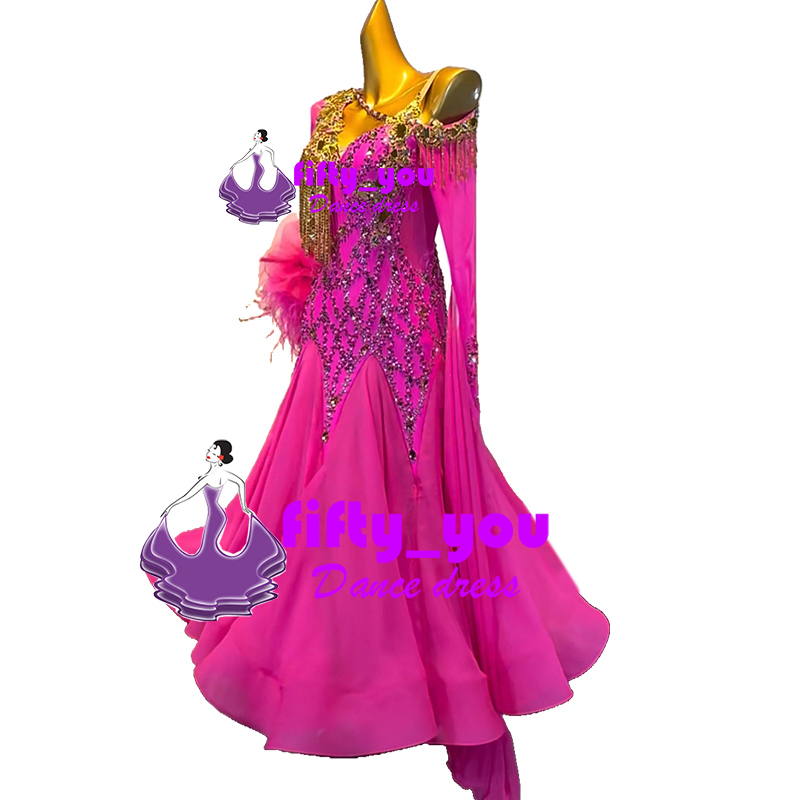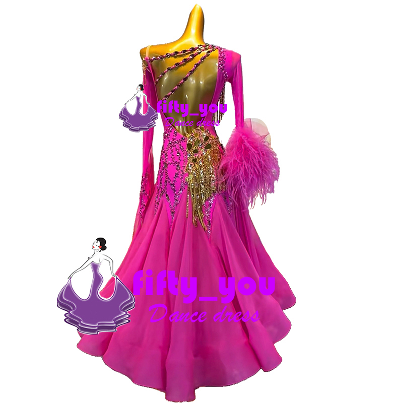 新品fifty_you レディース社交ダンスドレス サイズセミオーダー対応 モダン競技ドレス スタンダードドレス  ビーズいっぱい飾 輝き