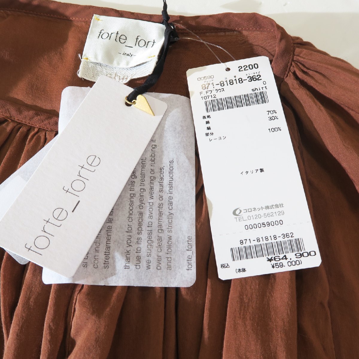forte_forte シルクコットン ボリュームスリーブ ギャザーブラウス 871-81818 |