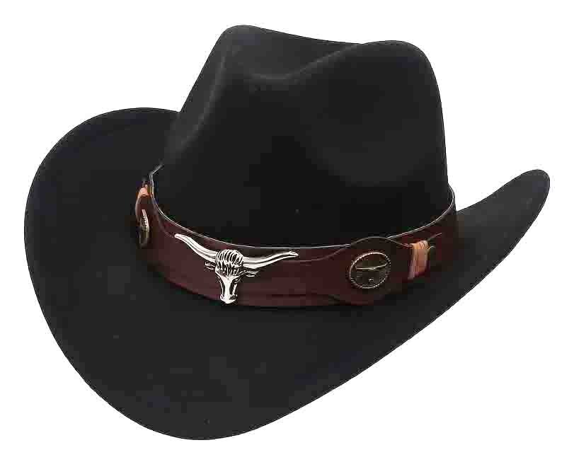 新品 ウエスタンハット バッファロー 飾りベルト 黒 1001 ブラック ブルトップ メンズ テンガロンハット カウボーイ 帽子 ロカビリー