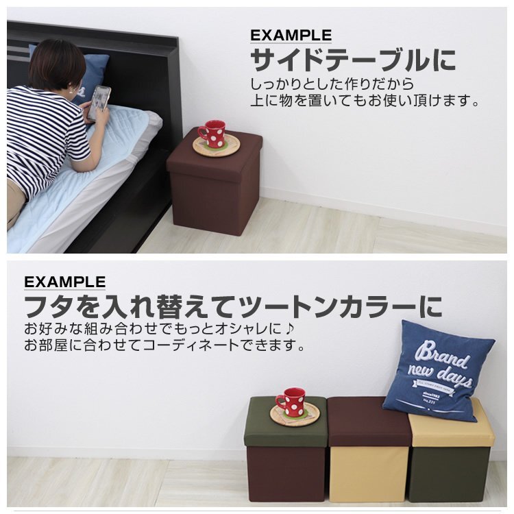 シンプルな箱型のデザインなのでいろんな場所、用途で使えます。 本体内部にはたっぷりの収納スペース。 使わないときはコンパクトに折りたたんでおけます。 子供のおもちゃ収納や、普段の収納スペース、ゲスト用の簡易スツールとしてお使いいただけます。 組立てはカンタン! 折畳まれたボックス部分を広げて底部に板を敷いて上からフタを被せるだけ! 耐荷重100kgと、大人が座っても大丈夫なくらい頑丈です♪ 【商品仕様】 カラー: モスグリーン 形状:四角形 サイズ(約):幅310×奥行き310×高さ330mm 材質:600Dオックスフォード布、MDF 重量(約):2kg 耐荷重(約):100kg 折りたたみ可能 【商品内容】 スツールボックス ×1 ※梱包状態によって座面にシワがある場合がございますので、予めご了承願います。 シワは暫くすれば取れますが、アイロン等で伸ばしていただく事が可能です。 【もちろん新品未使用品です】 |
