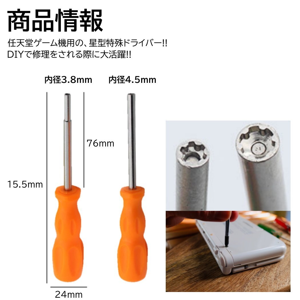2本入 任天堂 ゲーム機用 特殊ドライバー 本体用 カセット用 電池交換 メンテナンス 清掃 星型 星形 スーパーファミコン 3.8mm 4.5mm