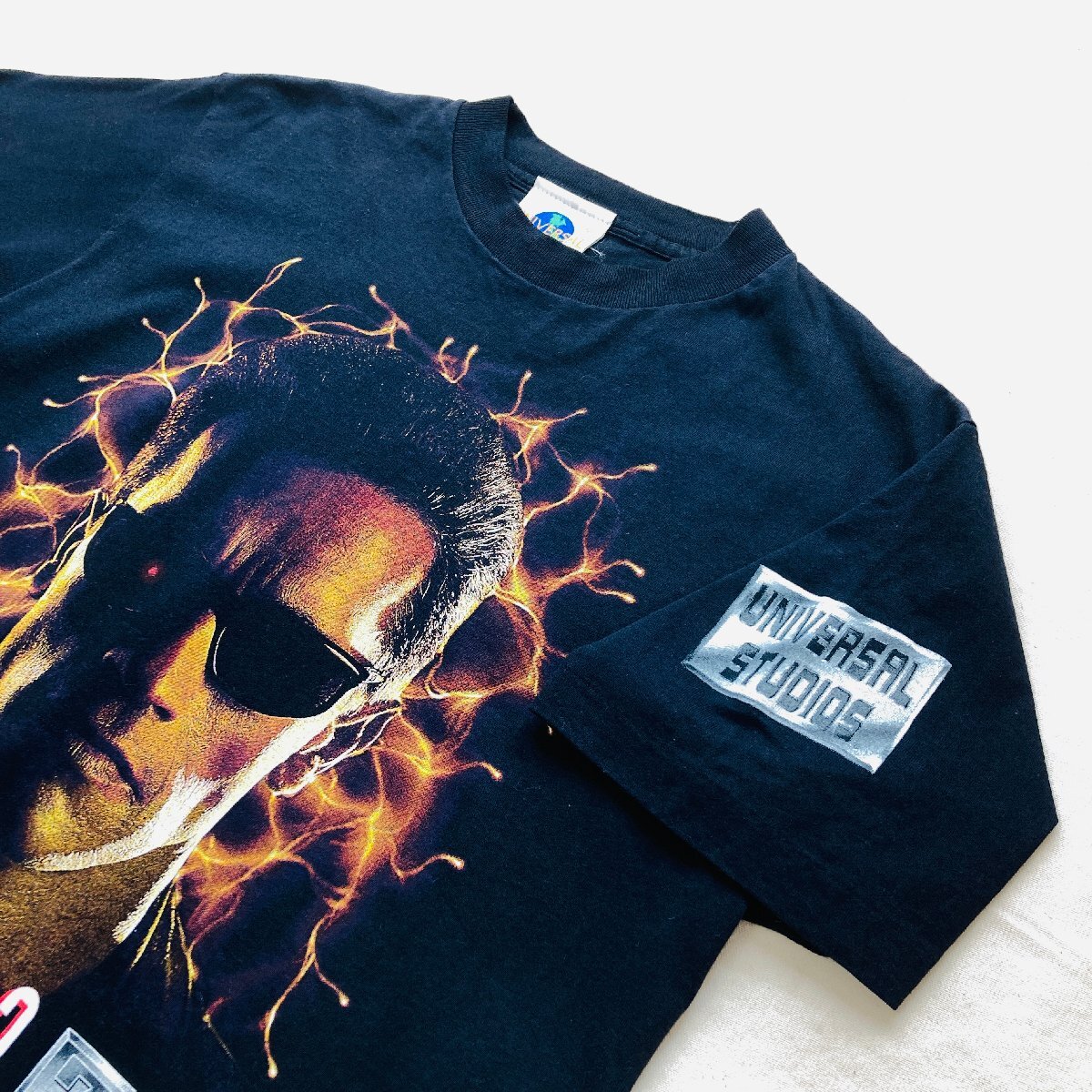 希少 美品 UNIVERSAL STUDIOS TERMINATOR 2 ターミネーター2 MADE IN THE U.S.A プリント Tシャツ. ブラック/黒 L