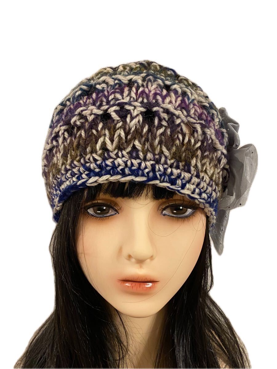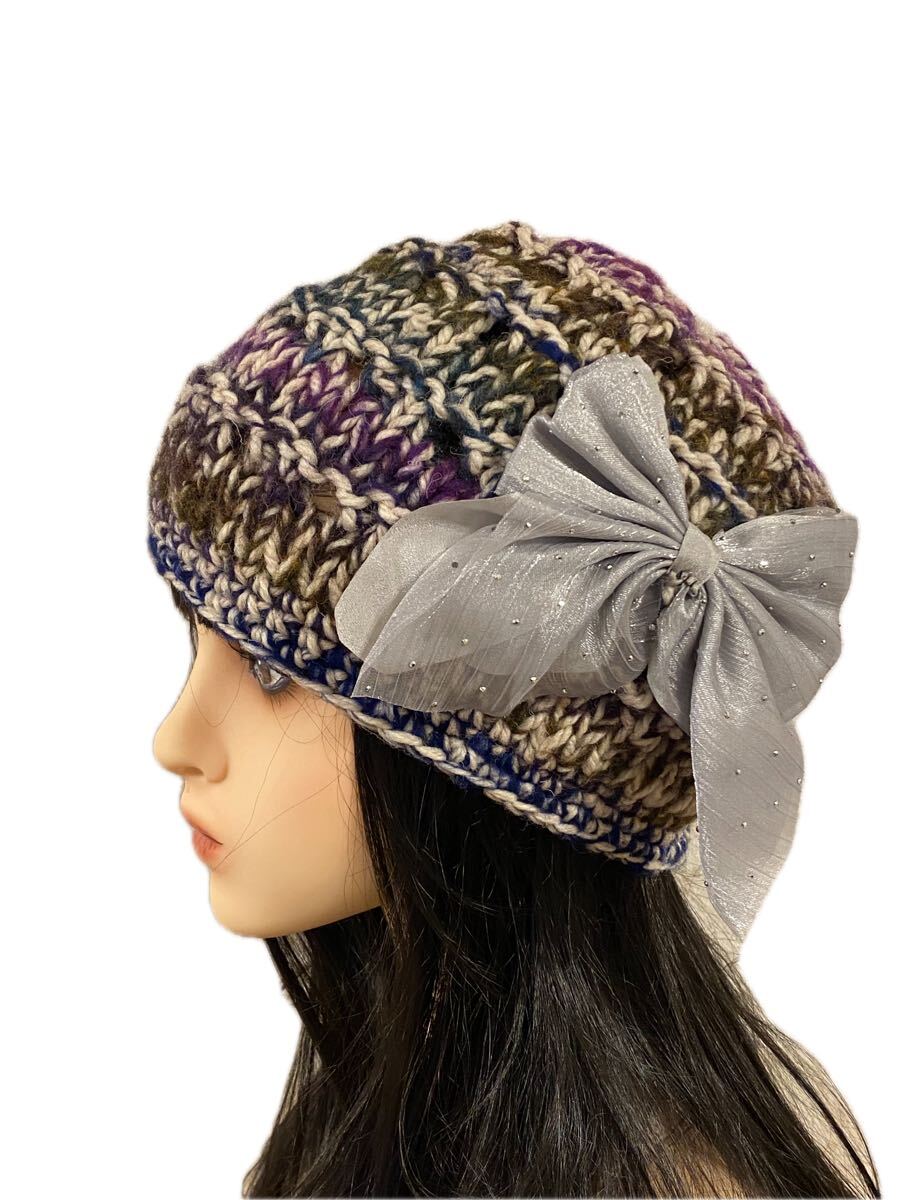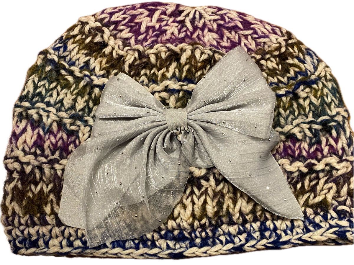 手作りの色々MIX糸で編んだニット帽子になります。
