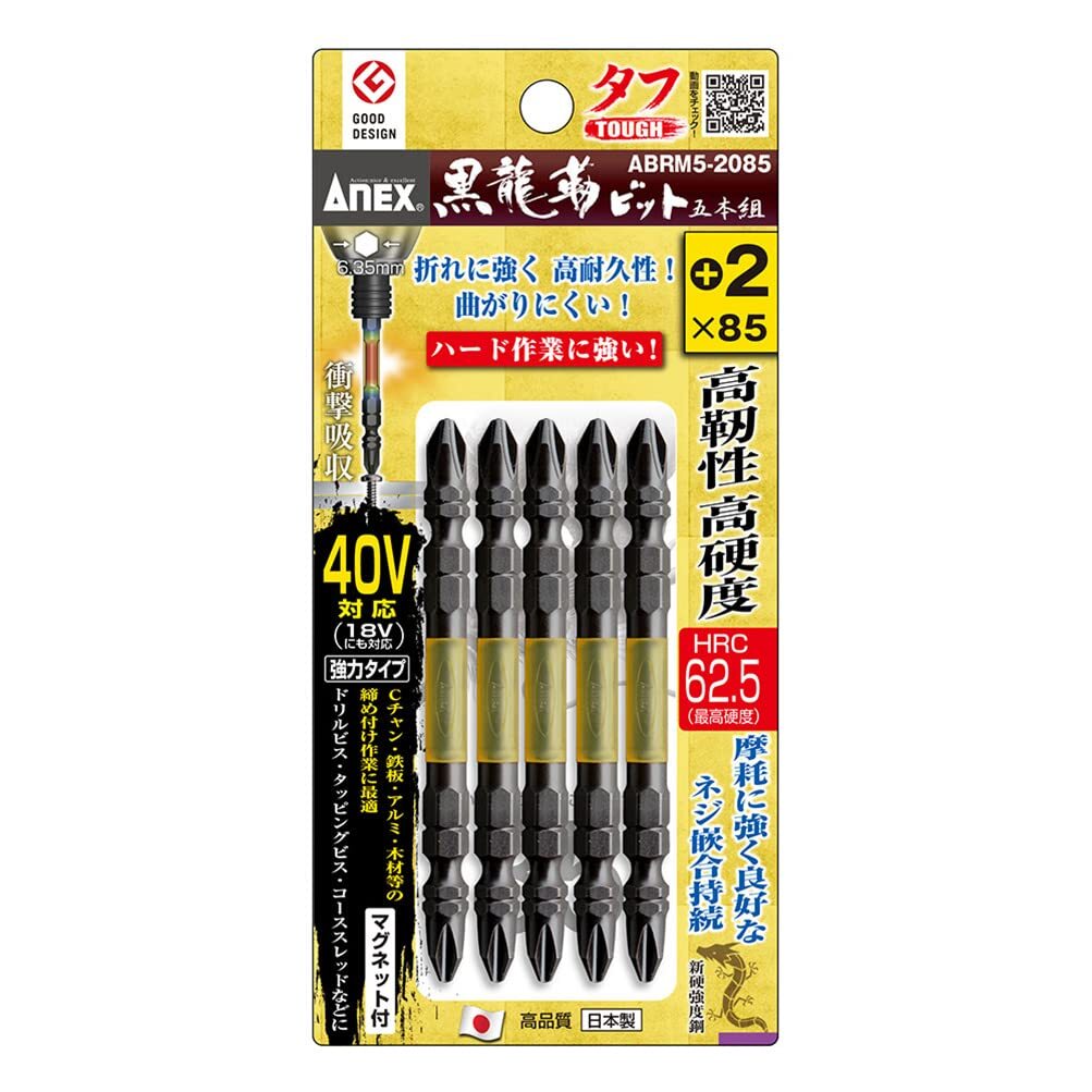 【数量限定】黒龍靭ビット 両頭 タフ +2x85 アネックス(ANEX) 5本組 ABRM5-2085