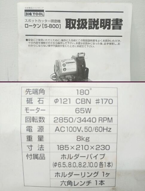 | タイトル | (1円スタート!) ビックツール スポットカッター研磨機 スポットドリル研磨機 ROKEN ローケン S-800 自動車鈑金 動作良好 B1003 |