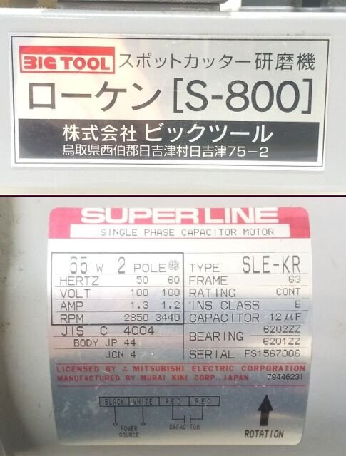 | 商品説明 | (1円スタート!) ビックツール スポットカッター研磨機 スポットドリル研磨機 ROKEN ローケン S-800 自動車鈑金 動作良好 B1003[21-1-1-A]:929421 |