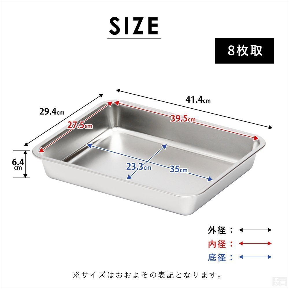 | 商品名 | ステンレスバット 深型 (8枚取サイズ) |