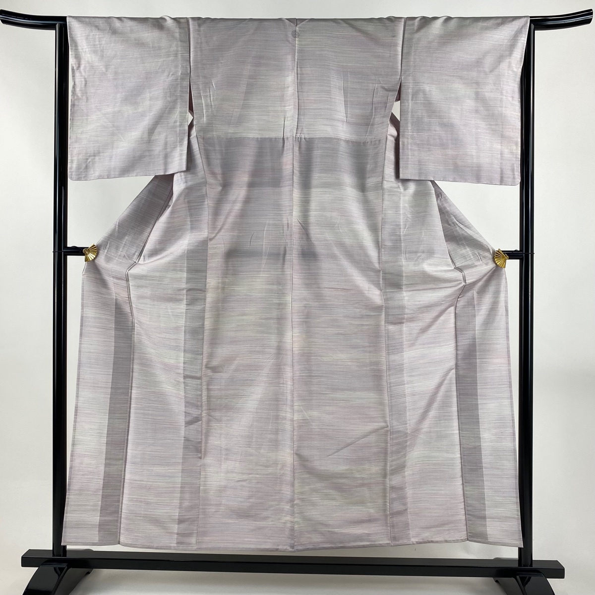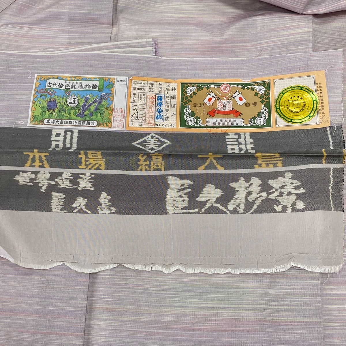 | 大島紬 美品 逸品 証紙 屋久杉染 横縞 薄紫 単衣 身丈155.5 裄丈63.5 S 正絹 【中古】 |