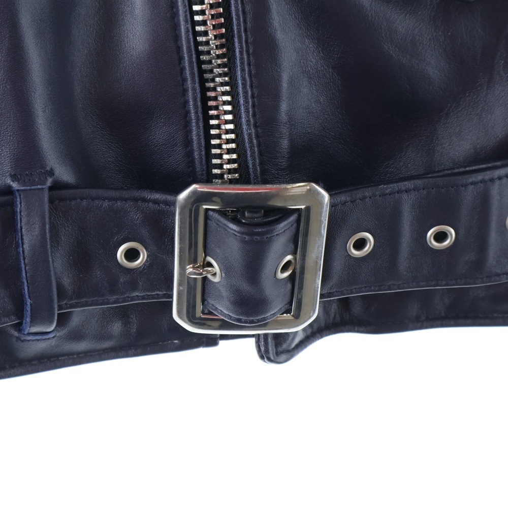 ショット ×ファット × ビューティー アンド ユース ユナイテッドアローズ ダブルブレスト レザー ライダースジャケット ネイビー