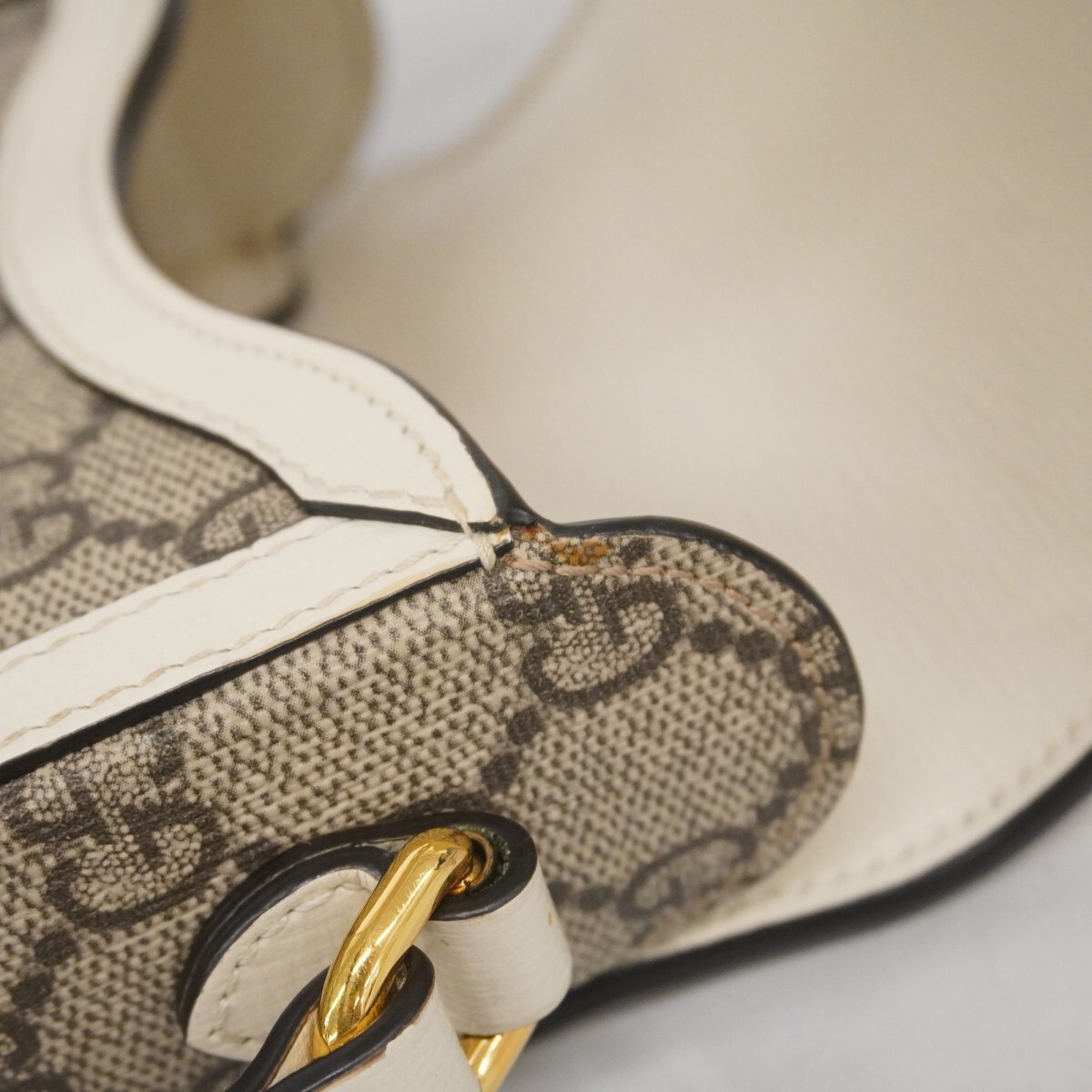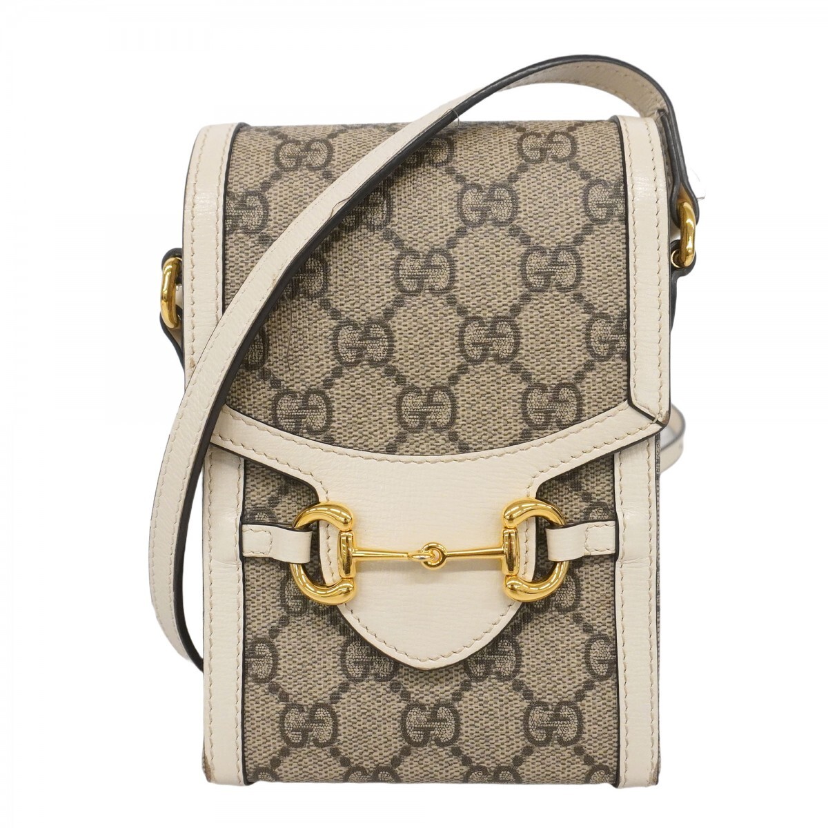 【5oc1645】グッチ ショルダーバッグ GGスプリーム ホースビット 625615 PVC レザー ブラウン ホワイト ゴールド金具【中古】レディース