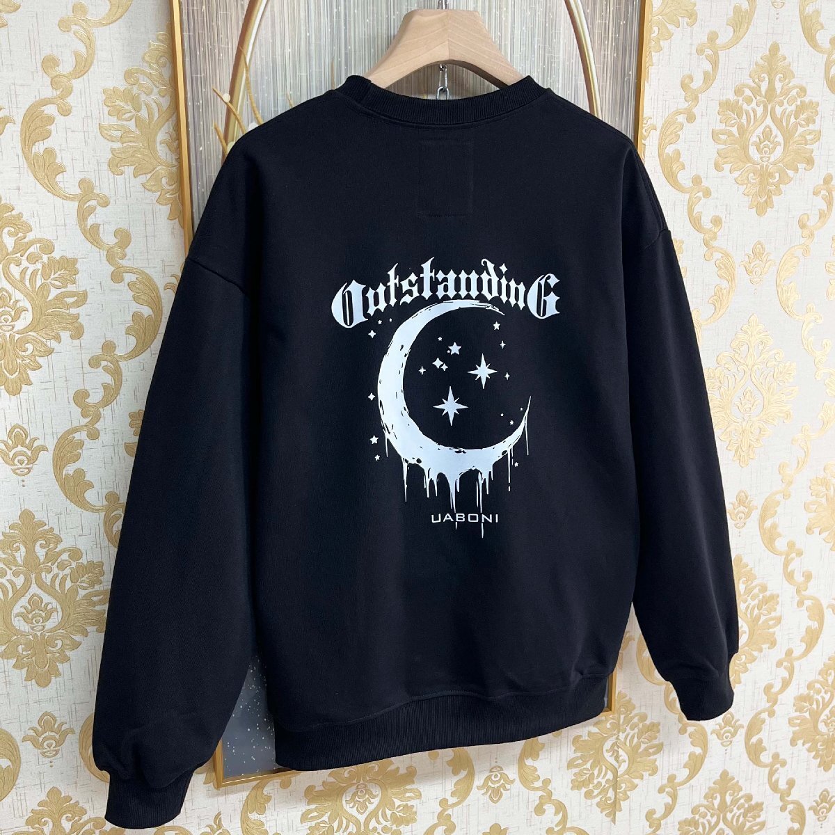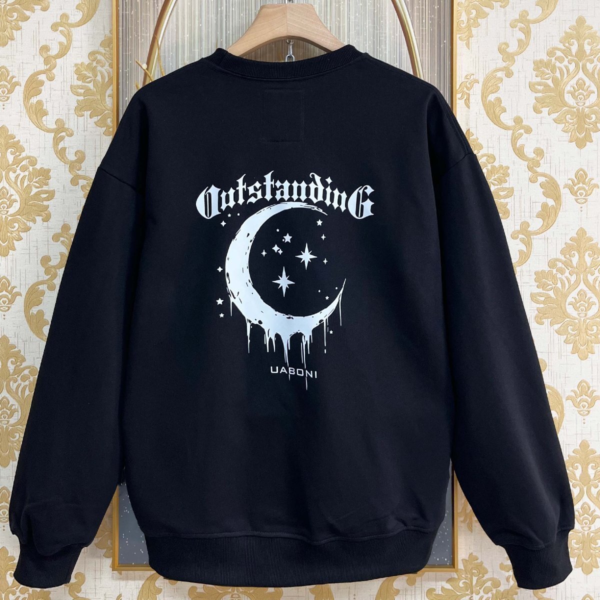 上級EU製&定価4万◆UABONI*Paris*トレーナー*フランス*パリ発◆エジプト綿100% ソフト 月柄 星柄 シンプル スウェット カットソー 秋冬 2XL/52サイズ