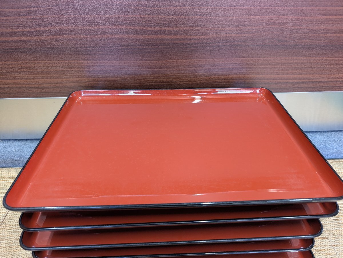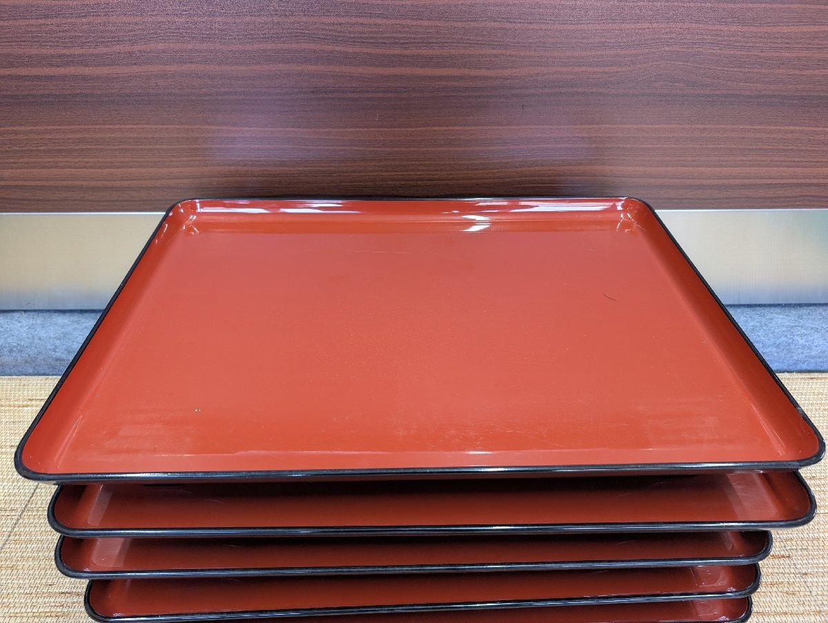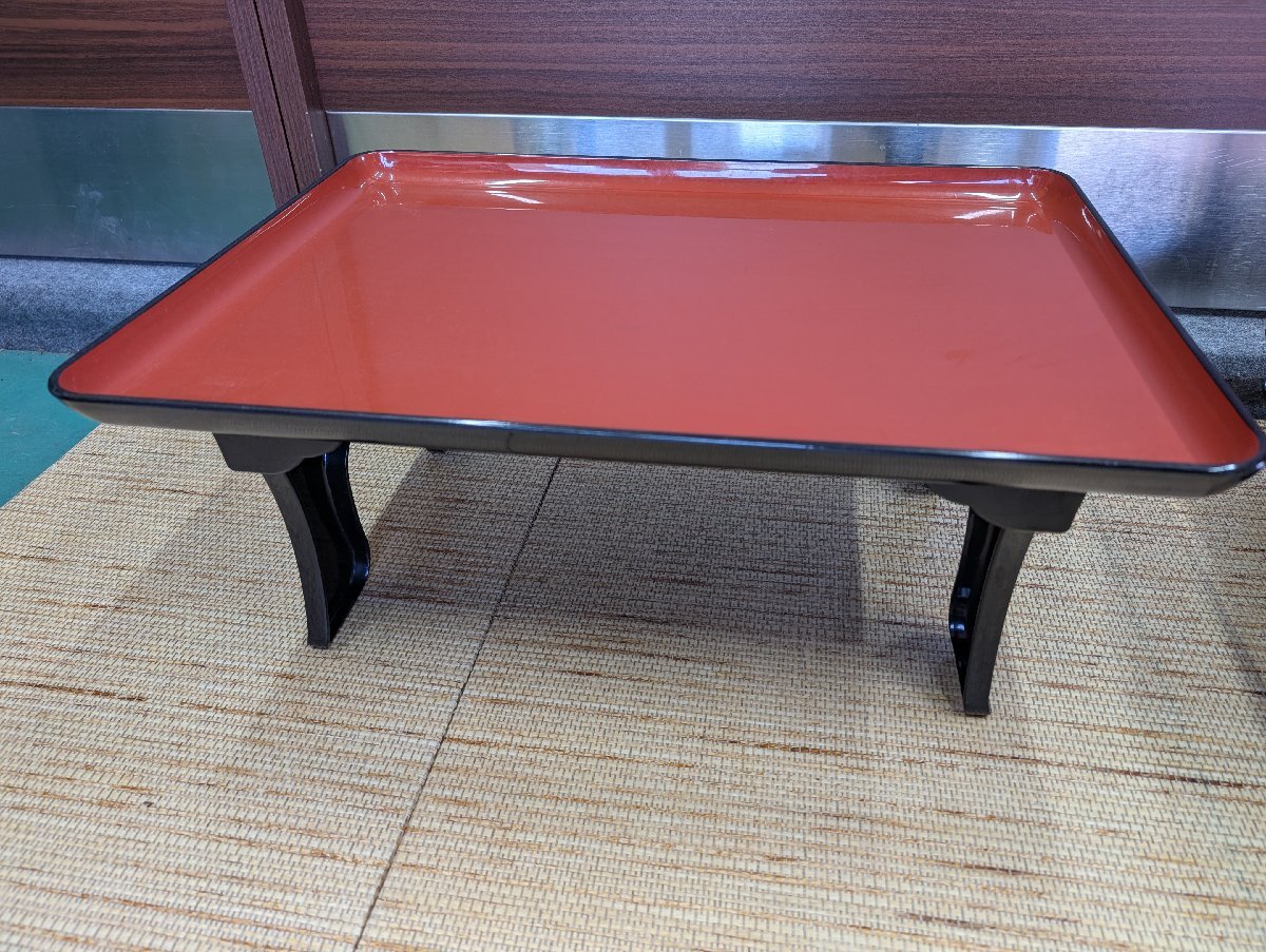 ③中古 折りたたみ式御前 赤 陽光膳 仕出し 会席 祝事 法事 飲食店 御膳台 5点セット 54×39×H22cm