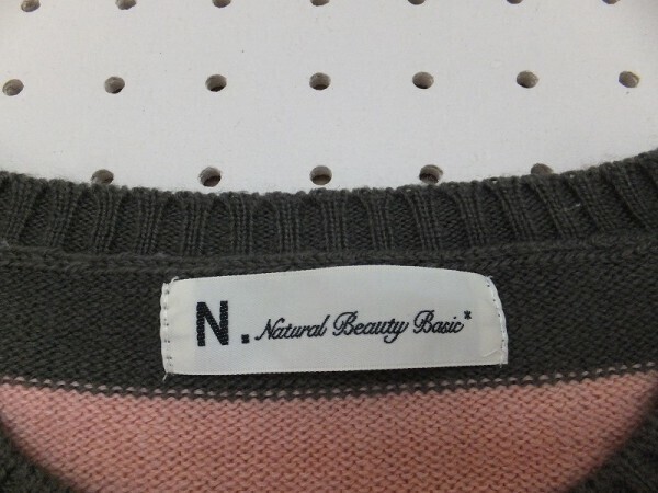 NATURAL BEAUTY BASIC ナチュラルビューティーベーシック レディース ボーダー ショート丈ニットソー M サクラチャコールグレー です。
