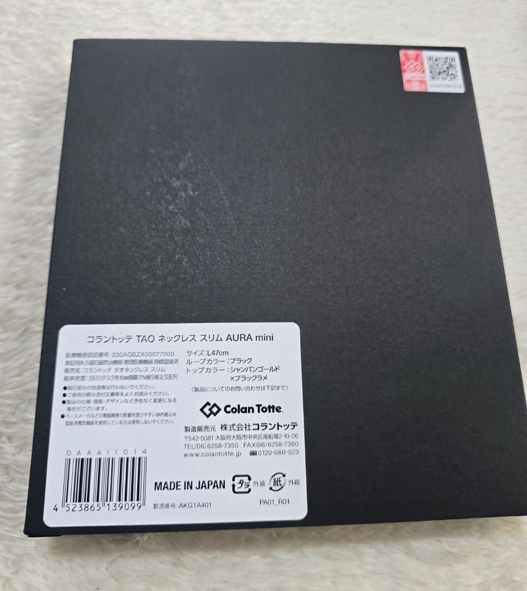 ネックループ全体には55ミリテスラの磁石がコラントッテ独自のN極S極交互配列で10mm間隔に配置されています。この配列により磁力を広範囲に影響させることができ、首・肩の血行を改善、首・肩のコリを緩和します。コラントッテ TAO ネックレス スリム AURA miniは首全体の血行を改善、コリに効く磁気ネックレスです。