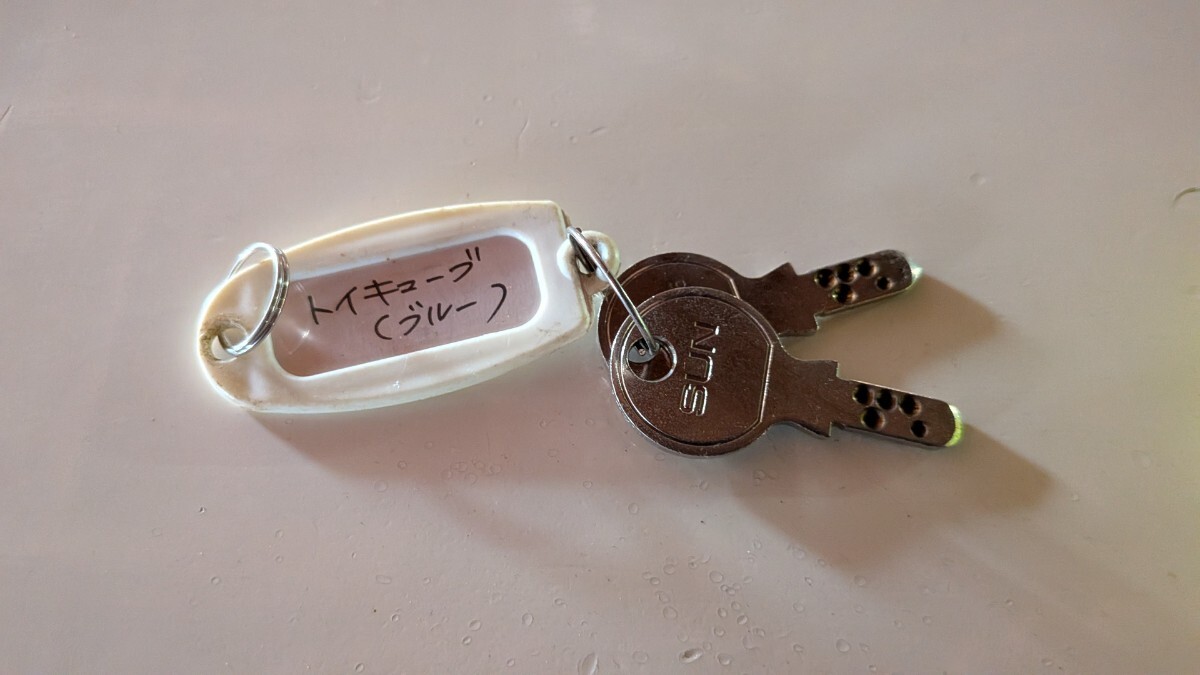 上面のカギと前面のカギは取り外しますが、コインボックスの専用キーは残っておりましたのでこちらはコンセントに取り付けて発送いたします。
