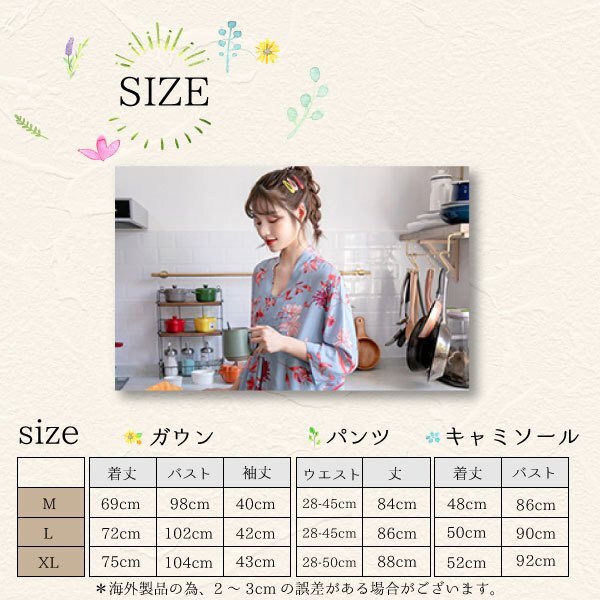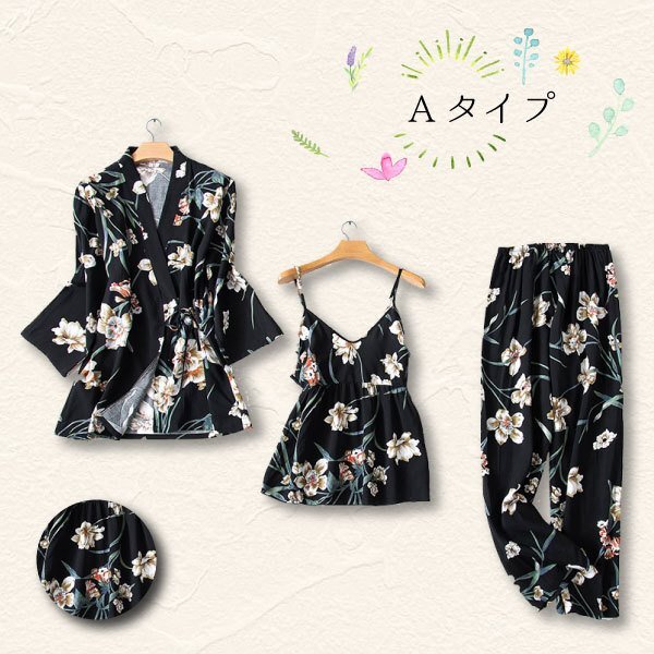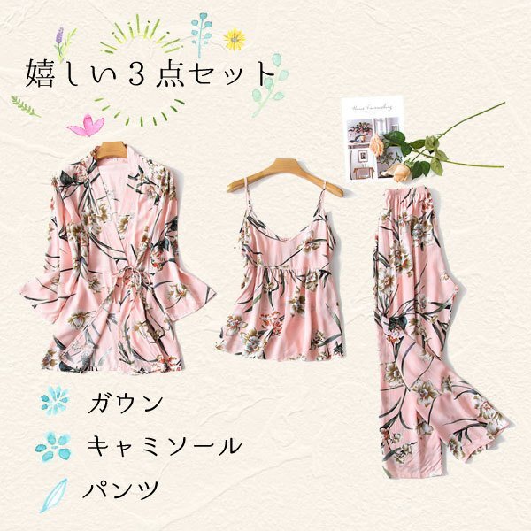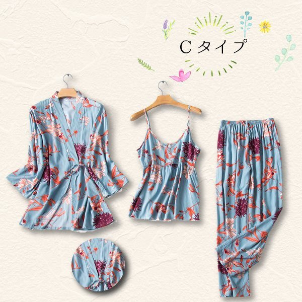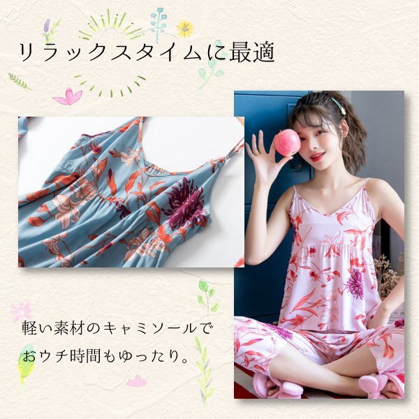| ☆レディース ルームウェア ※ご購入しましたらオーダーフォームにてご希望のカラー、サイズをお知らせください。 カラー:Bタイプ, Dタイプ サイズ:M, L, XL 【商品名】 レディース ルームウェア 【素材】 コットン 100% 【セット内容】 ◆ショート丈ガウン ◆キャミソール ◆パンツ 【サイズ】 ■M ■L ■XL 【カラー】 ・Aタイプ:全てのサイズ在庫切れ ・Bタイプ ・Cタイプ:全てのサイズ在庫切れ ・Dタイプ 【特徴】 コットンの柔らかな肌触りで、リラックスタイムに導くルームウェアです。 吸水性と通気性に優れており、サラッとした着心地良さが続きます。 3点セットで組み合わせ次第で、夏でも肌寒い時でも使えるお得なルームウェア♪ ボタニカルな柄でリラックスタイムをおしゃれに演出。 ガウンは紐タイプ、ボタンタイプよりもゆったり着れます。 ウエストゴムでゆったりラクチンのパンツ。着心地もサラサラです。 | ||||