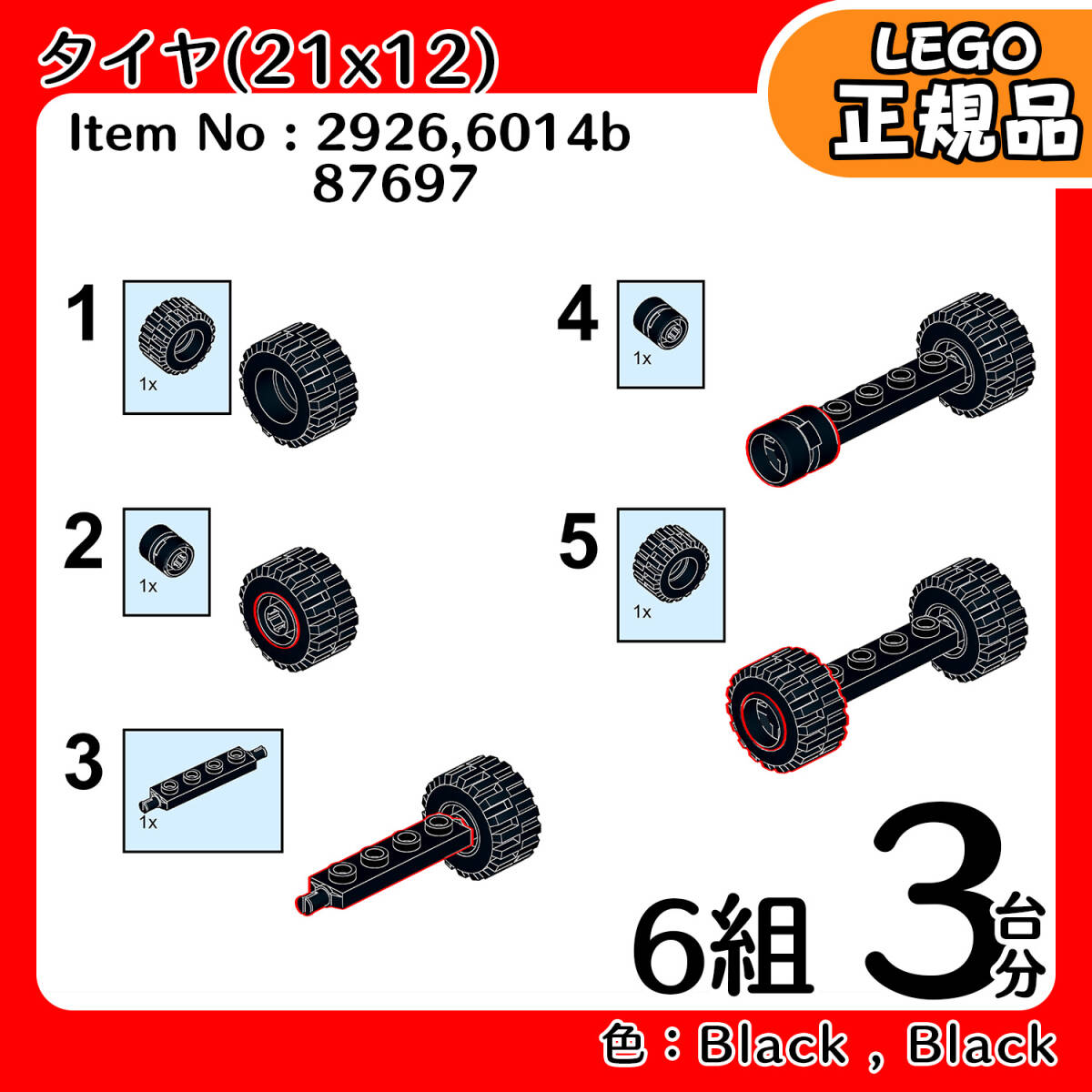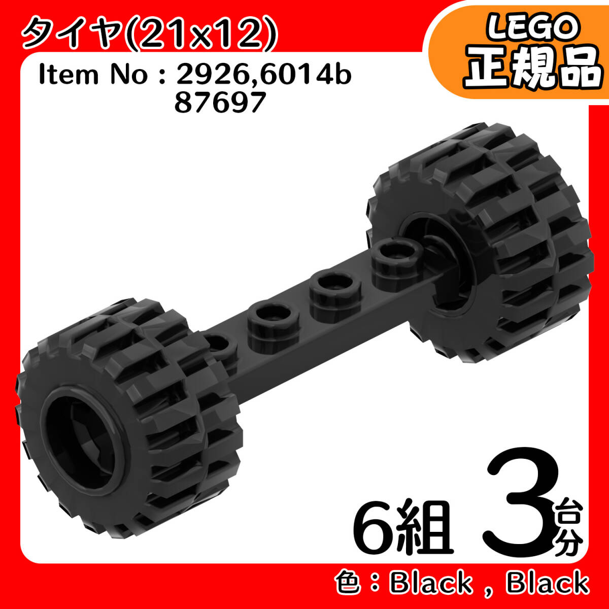 LEGO 黒車軸&タイヤ(21x12)&黒ホイール 3台分6組/未使用,正規品,匿名配送,送料無料