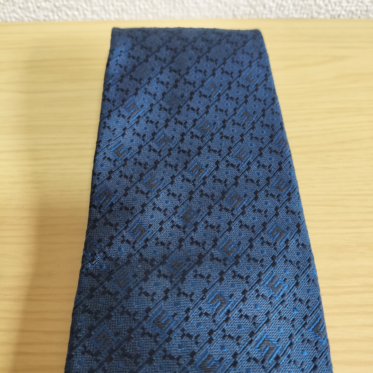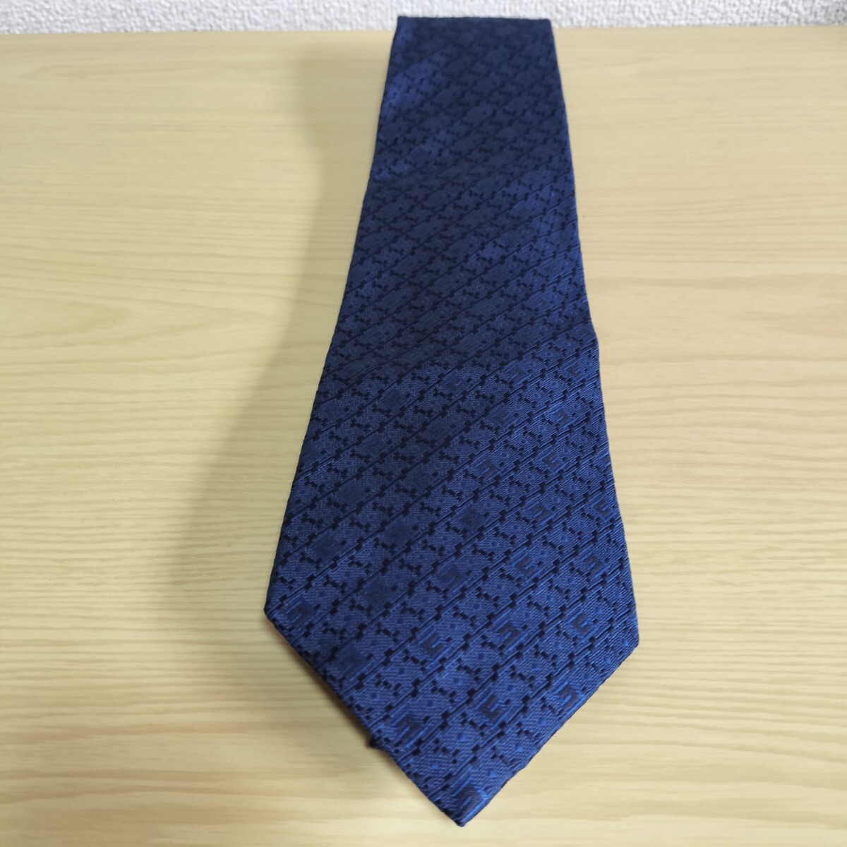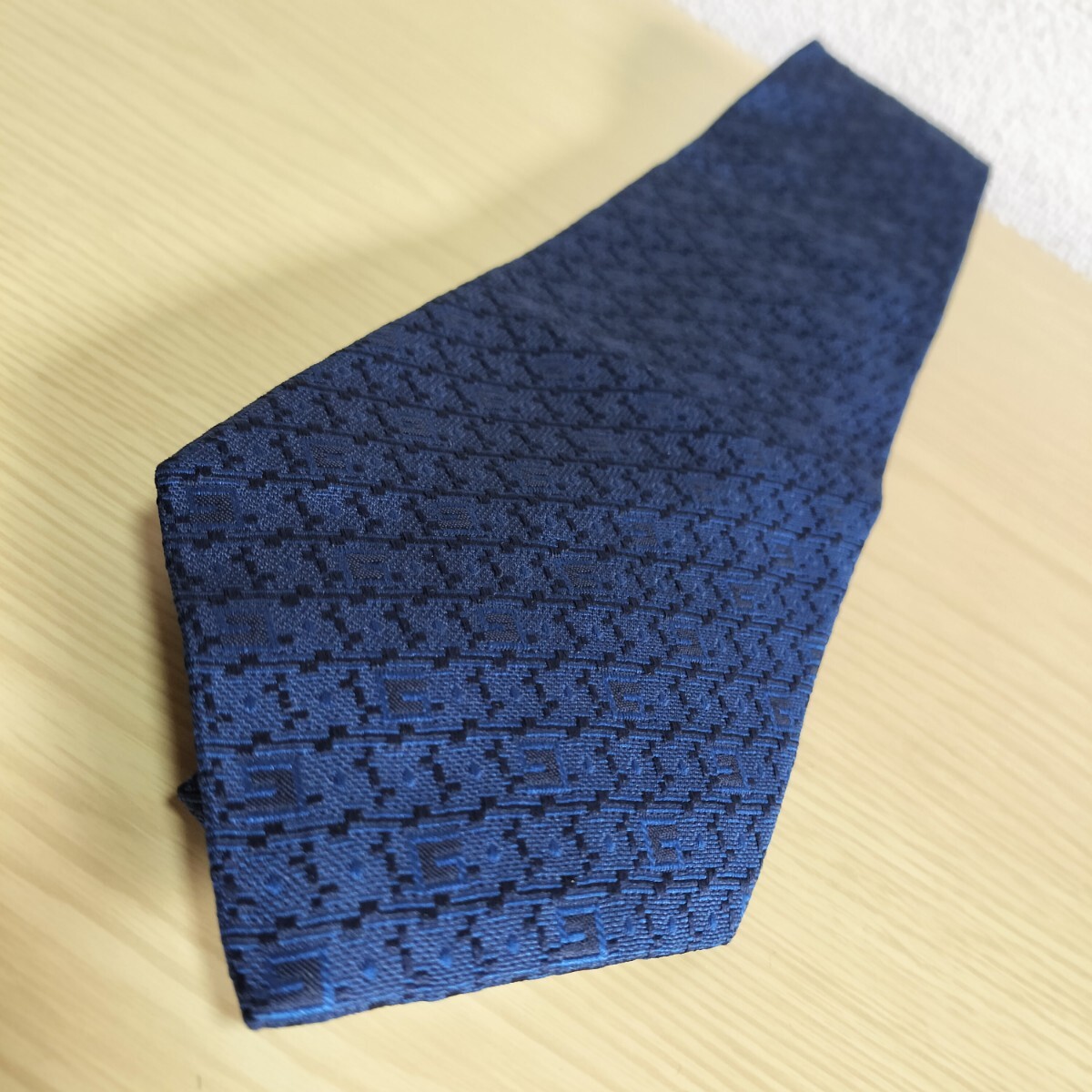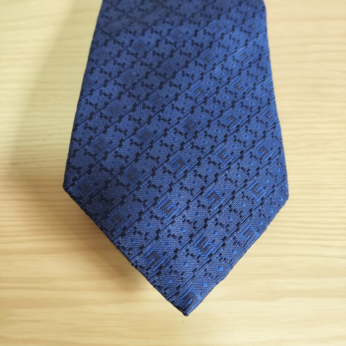 ダーク紺色Gロゴ四角模様ネクタイ