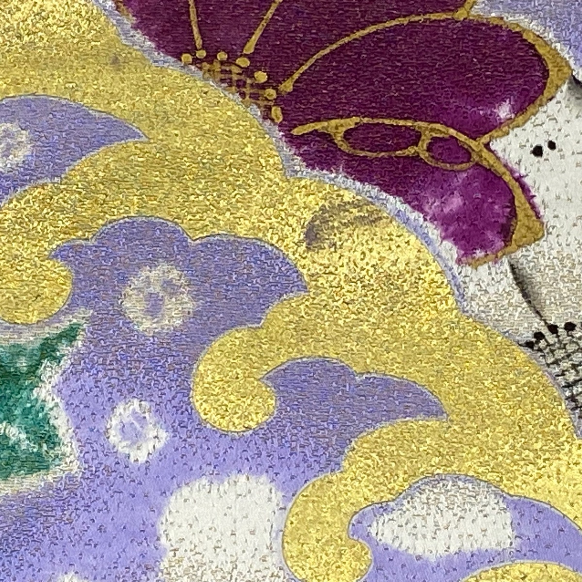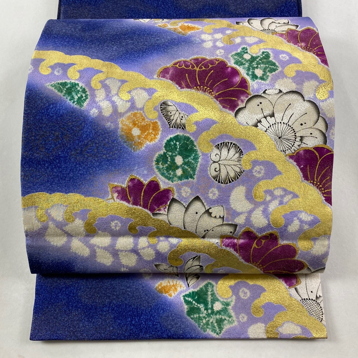 | 袋帯 逸品 辻が花 波 金通し 金彩 青紫 お太鼓柄 正絹 【中古】 |