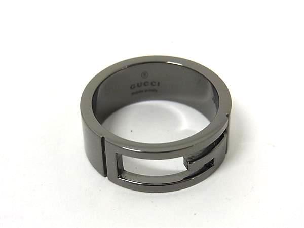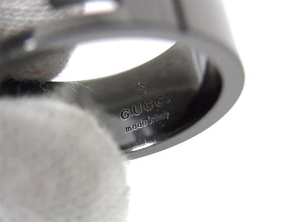 1円 ■美品■ GUCCI グッチ ブランデッドG SV925 リング 指輪 アクセサリー 表記サイズ16 (約15号)メンズ レディース ブラック系 FS7101
