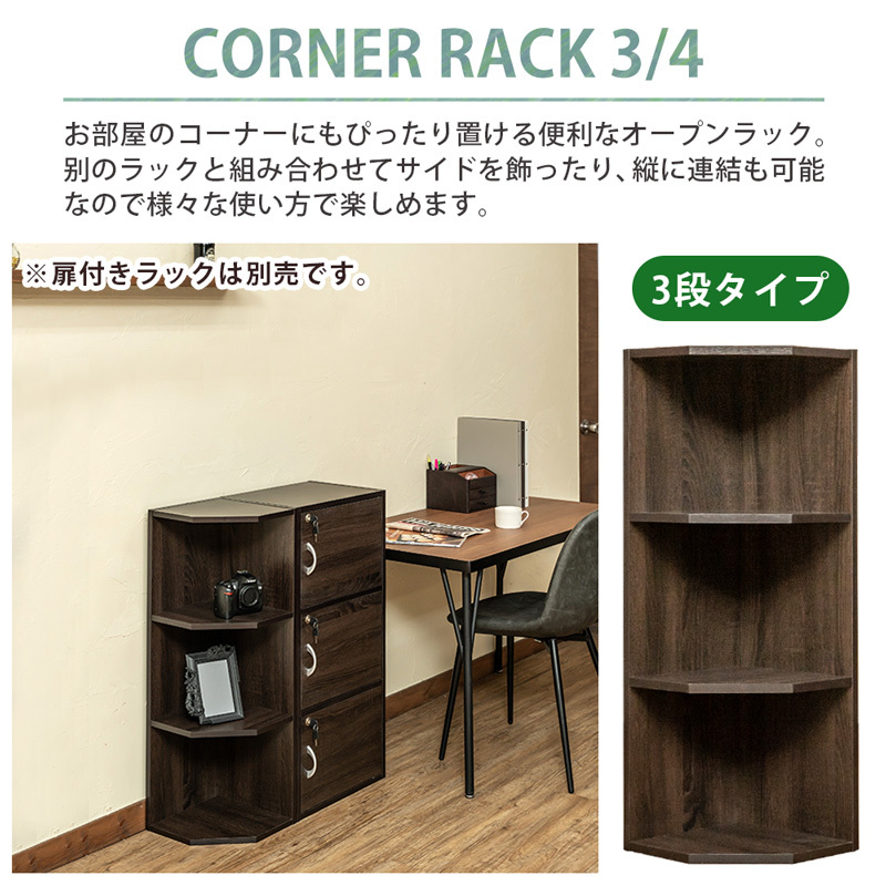 | 商品説明 | 組立品(30分) コーナーも見せる収納で! 積み重ねOKな便利なラック! ! コーナーが収納スペースに早変わり! 見せる収納でお部屋をかっこよく飾ってみませんか? 本や小物、グリーンなどを置いて収納とディスプレイを一緒に楽しむ事が出来ます。 2台あれば 縦に積み重ねられるのでデッドスペースを有効に使えます! 組み合わせ次第で最大8段まで可能です。 (3段と4段の連結も可能) ネジ穴隠しのシールも付属しているので、見た目もすっきり! ※転倒防止金具付き。 |
