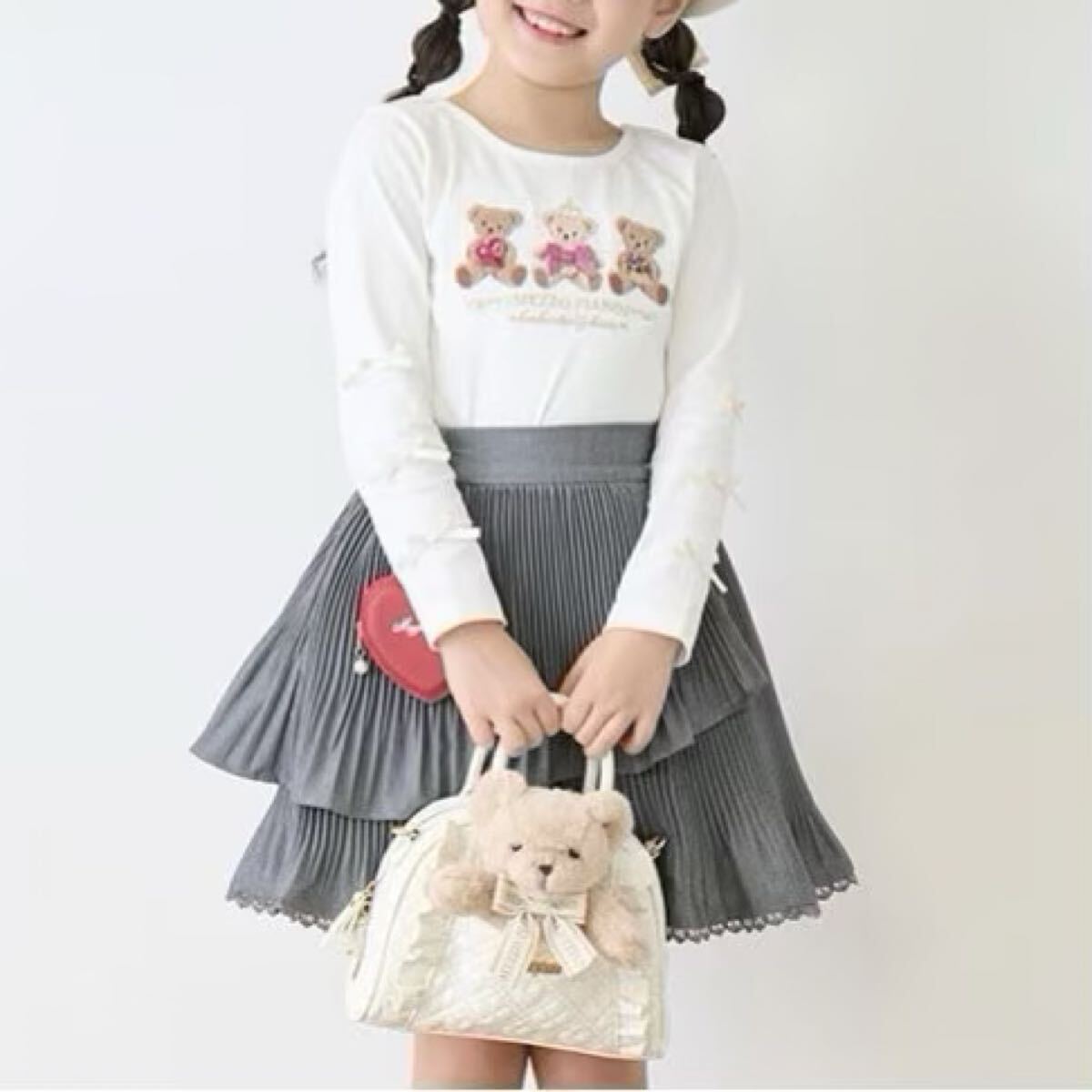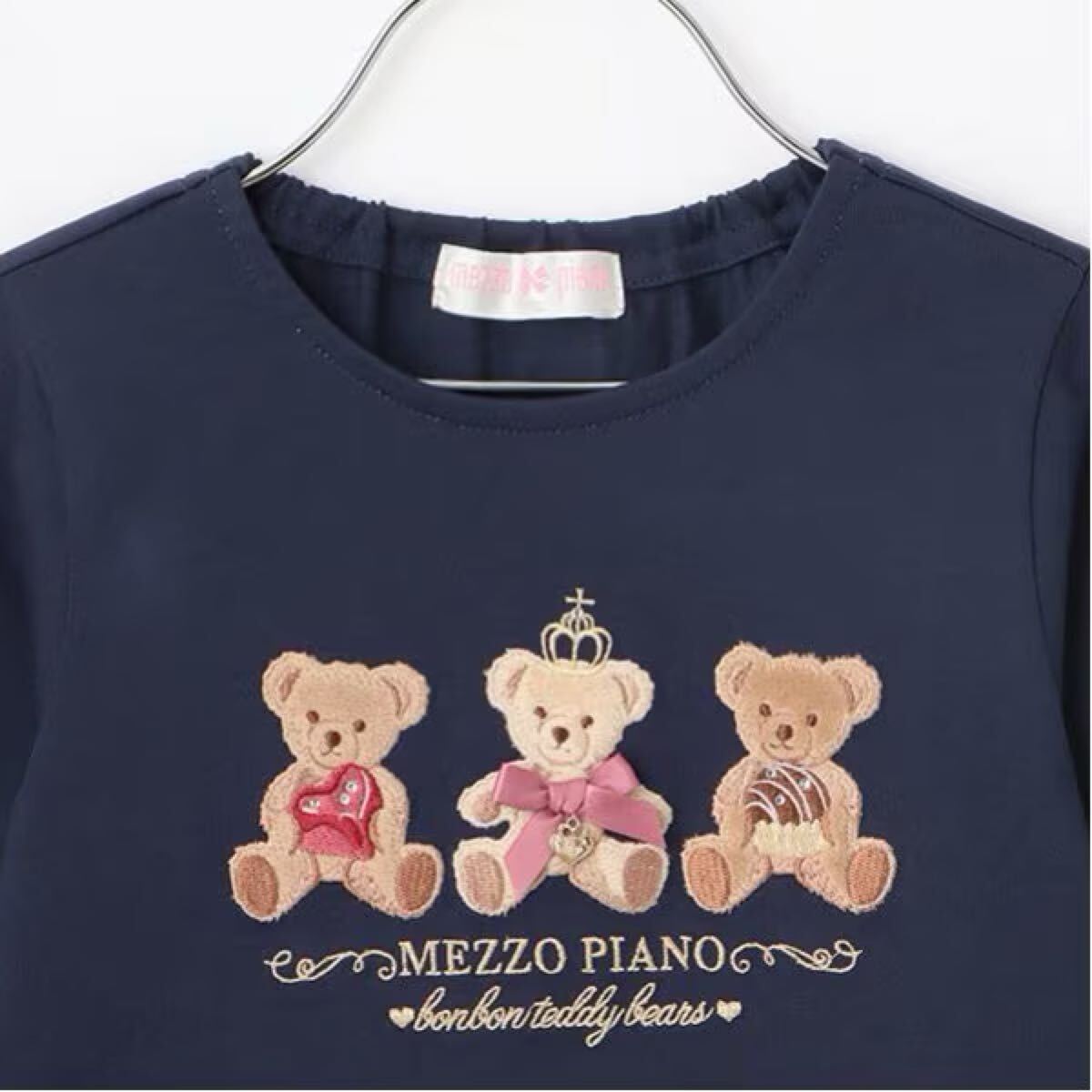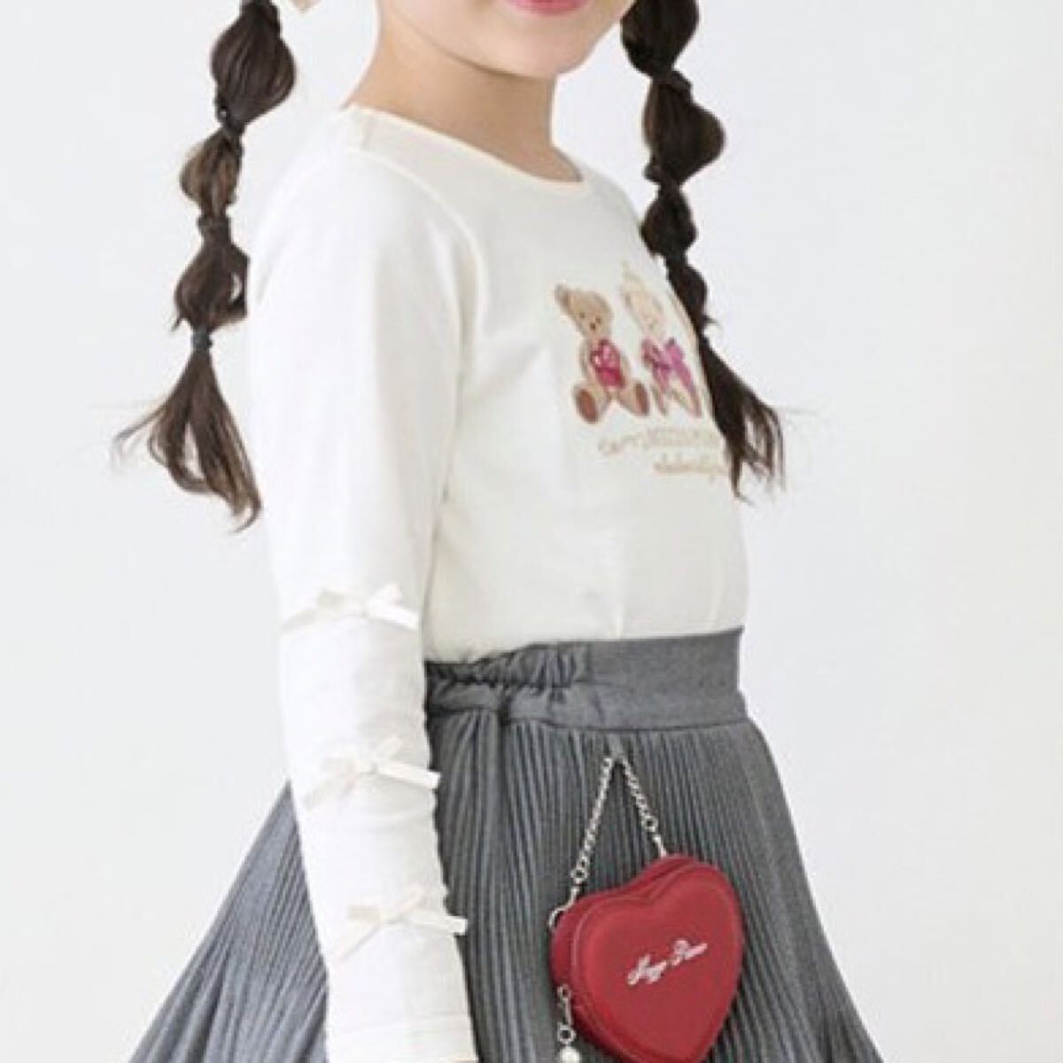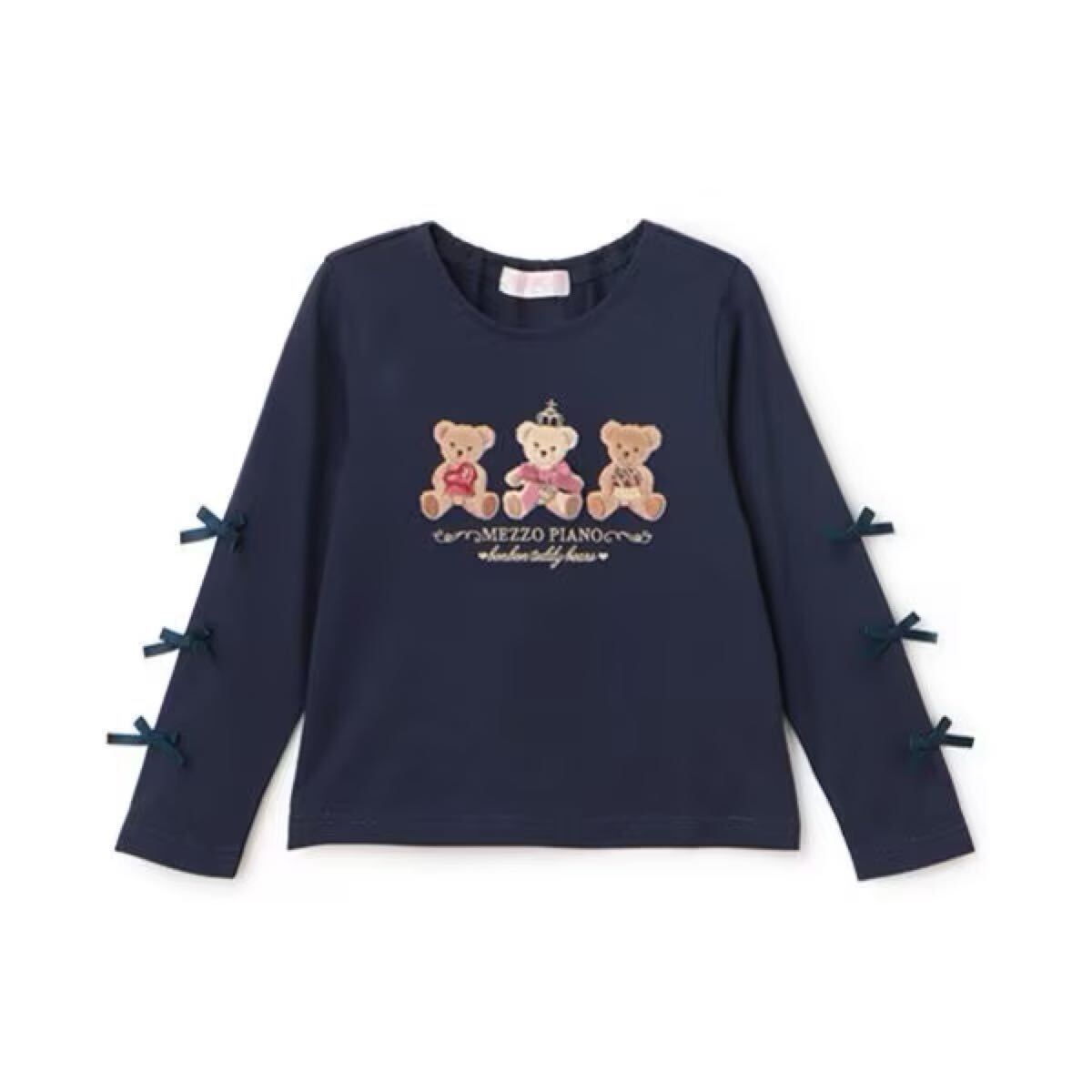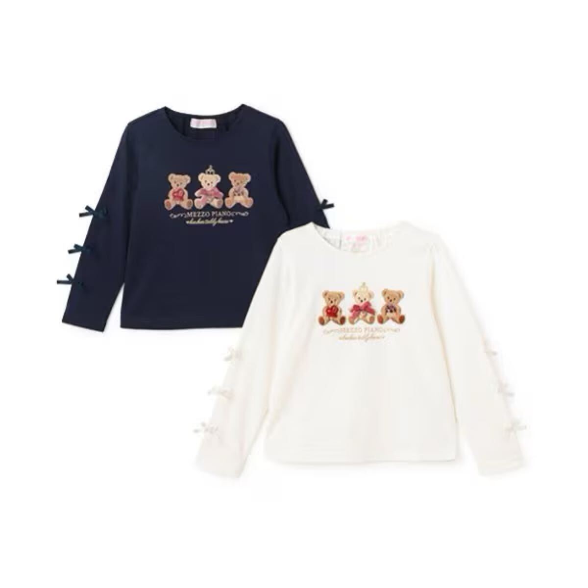 くまちゃんのアップリケが可愛らしい長袖Tシャツです。