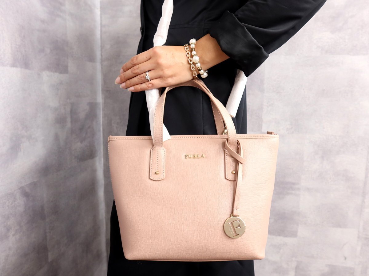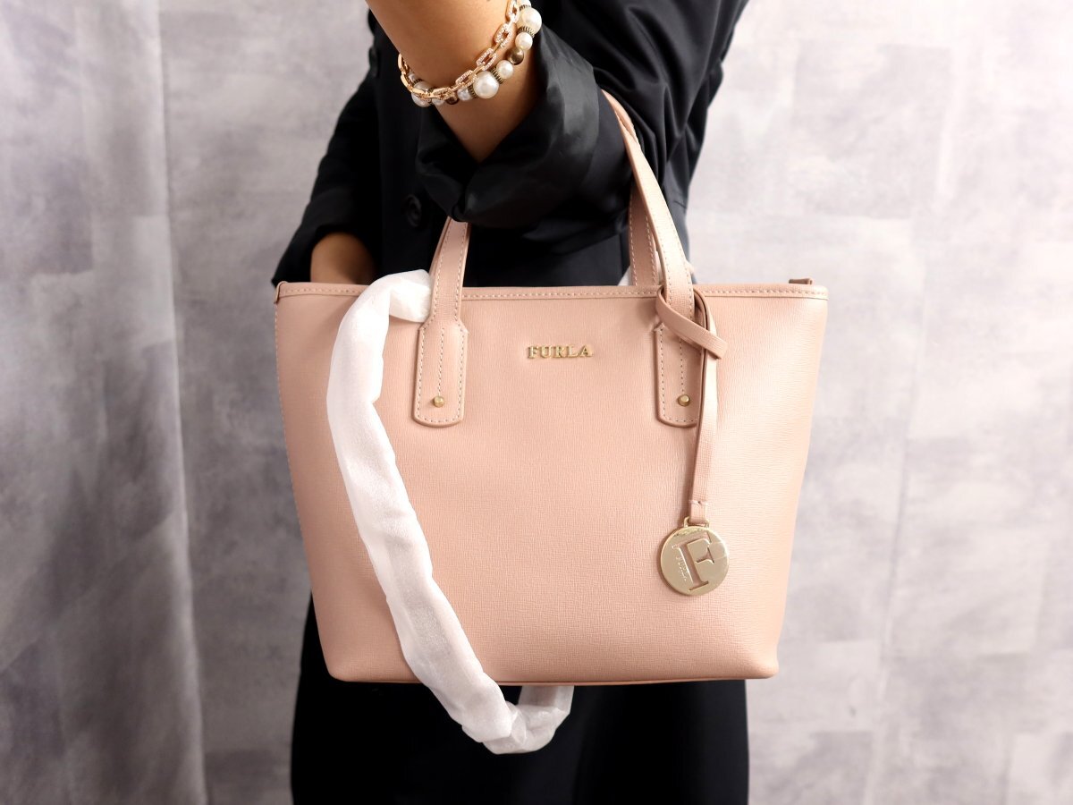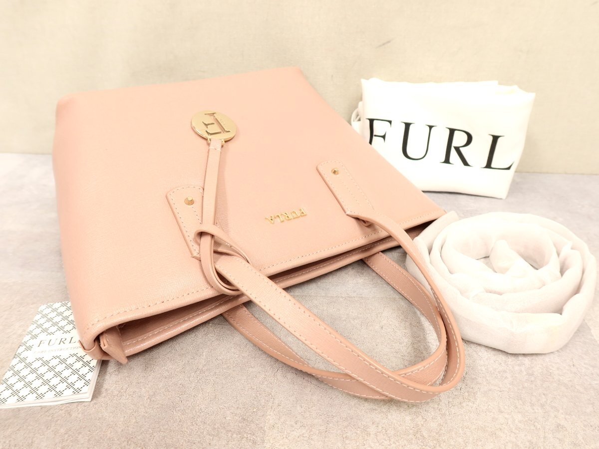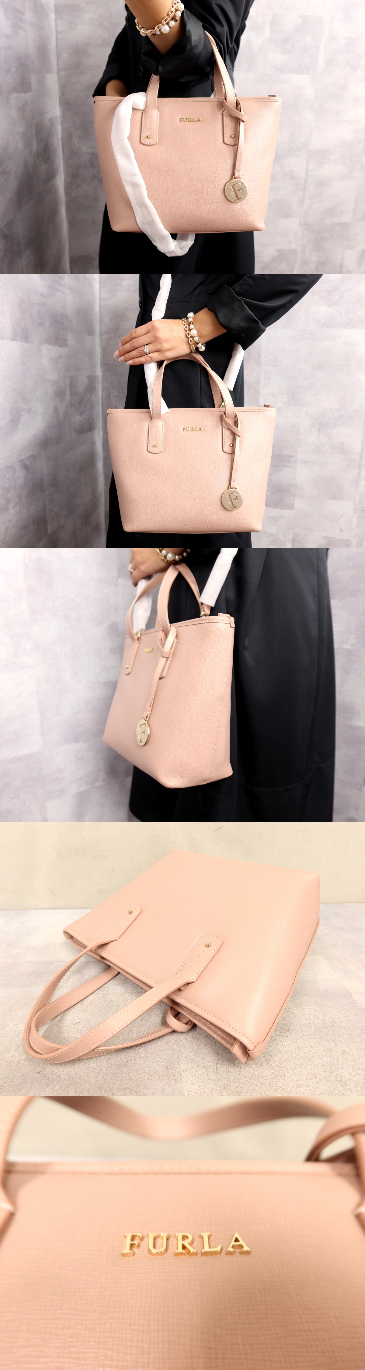●超美品●新品同様●FURLA フルラ●デイジー●ロゴ金具●カーフ レザー 本革●2way トート バッグ●くすみピンク●ゴールド金具●Js62353