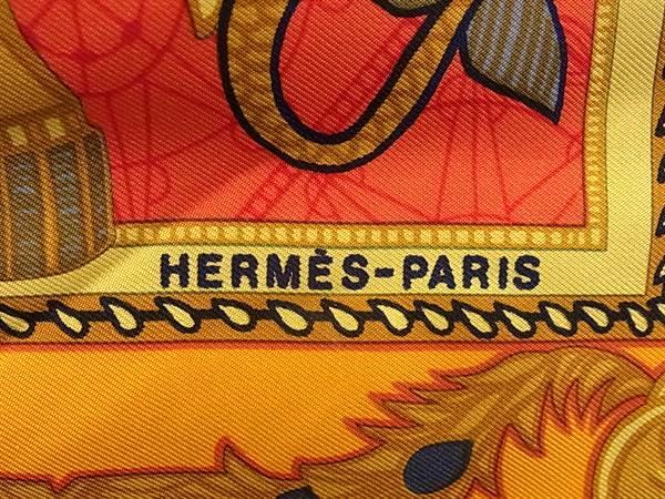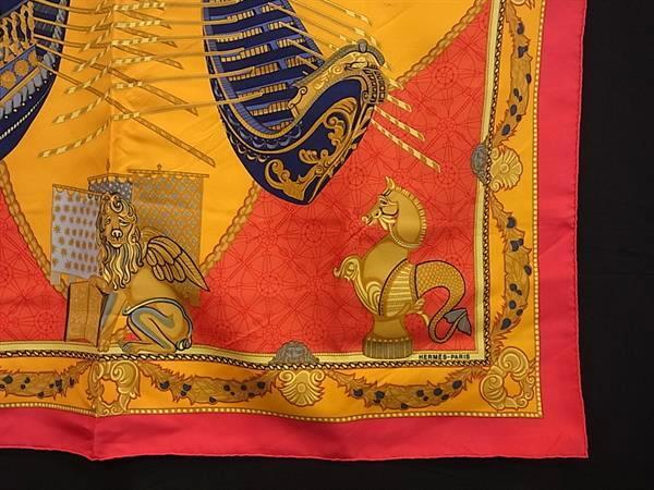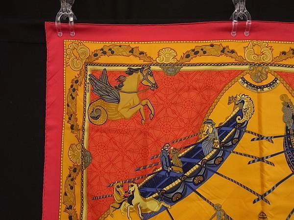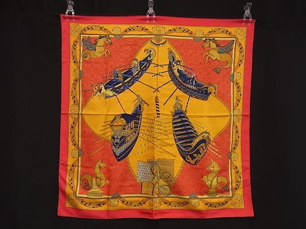 1円 ■美品■ HERMES エルメス LES BISSONE DE VENISE 【ヴェニスの船祭り】 カレ90 シルク100% 大判 スカーフ ストール レッド系 FU4327