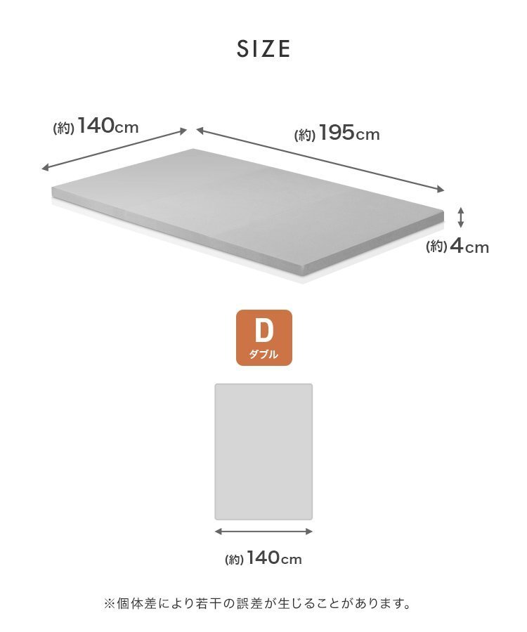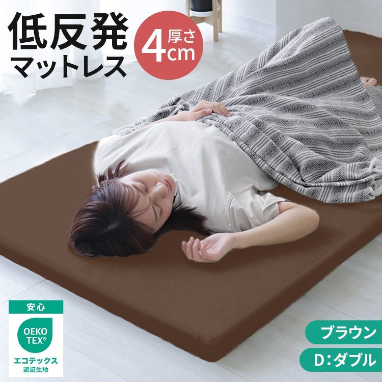 | 今、使っている寝具にプラス1枚!お手軽に寝心地UP♪ マットレスや敷き布団に重ねて、寝心地の悪さやへたりを改善します。 身体に合わせて沈み込み、肩・腰・背中への負担を軽減します。 体圧を均一に吸収・分散するため、包み込まれるよな寝心地を実現します! 折り目のない1枚物タイプです。 へたりにくく、寝心地が安定しています。 \使いやすさ抜群!カバーおすすめポイント/ ・心地よい肌触りが魅力なパイル生地 ・オールシーズン快適 ・ご家庭の洗濯機で洗える ・脱着しやすいL字ファスナー ・肌に優しい!エコテックス認証 このマットレスなら厚さ4cmなのでお使いの寝具に重ねやすく、 使い慣れた寝具を買い替える必要もありません! 【商品仕様】 カラー:ブラウン サイズ(約):幅140cm×長さ195cm×厚み4cm(ダブルサイズ) 素材:低反発ウレタン(密度40kg/m3)、パイル生地 他 ■保証期間 7日間 ※商品到着後7日以内の初期不良・破損のみご対応させていただきます。 【新品未使用品です】 |