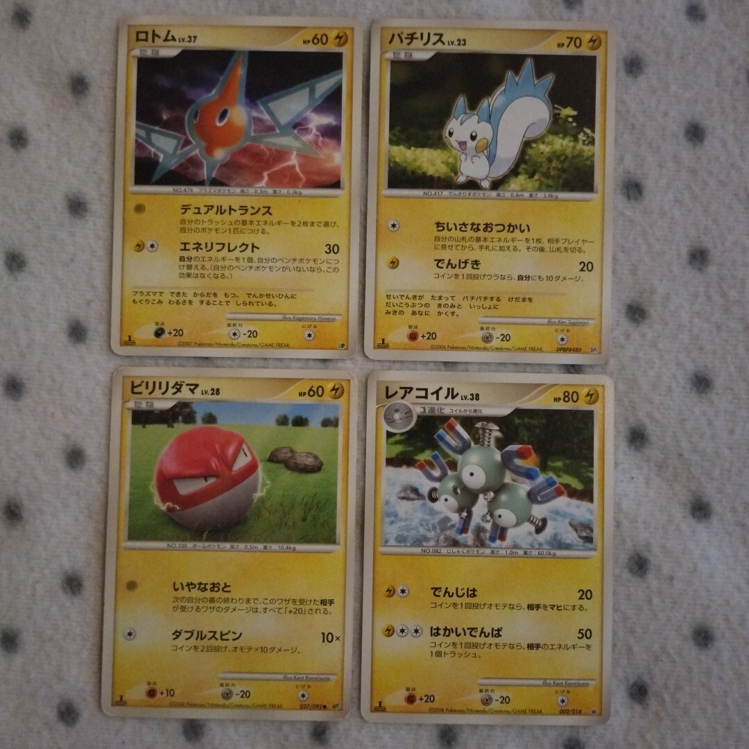 ポケモンカード DP ロトム、パチリス、ビリリダマ、レアコイル の4枚セットです。