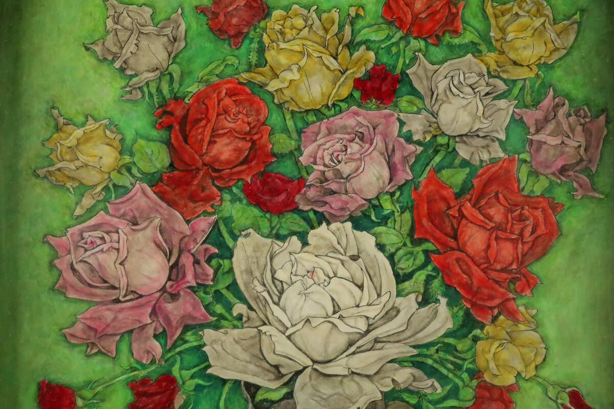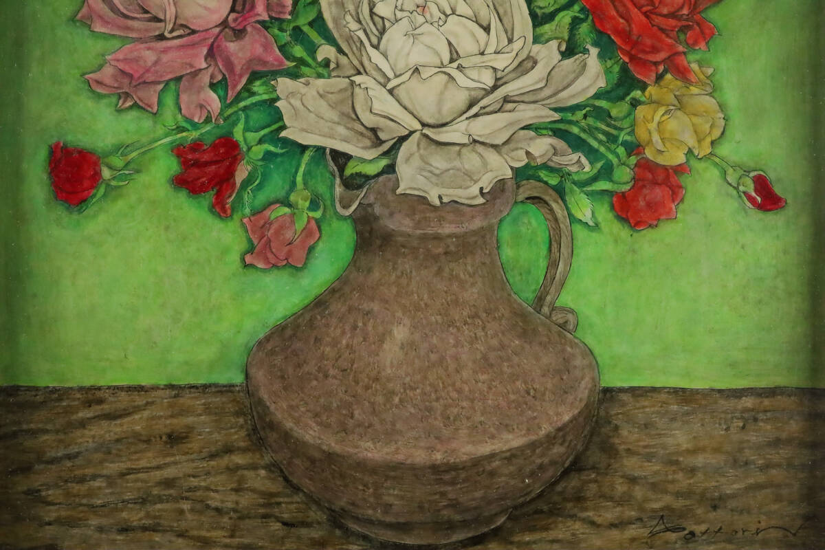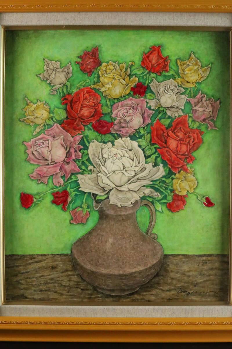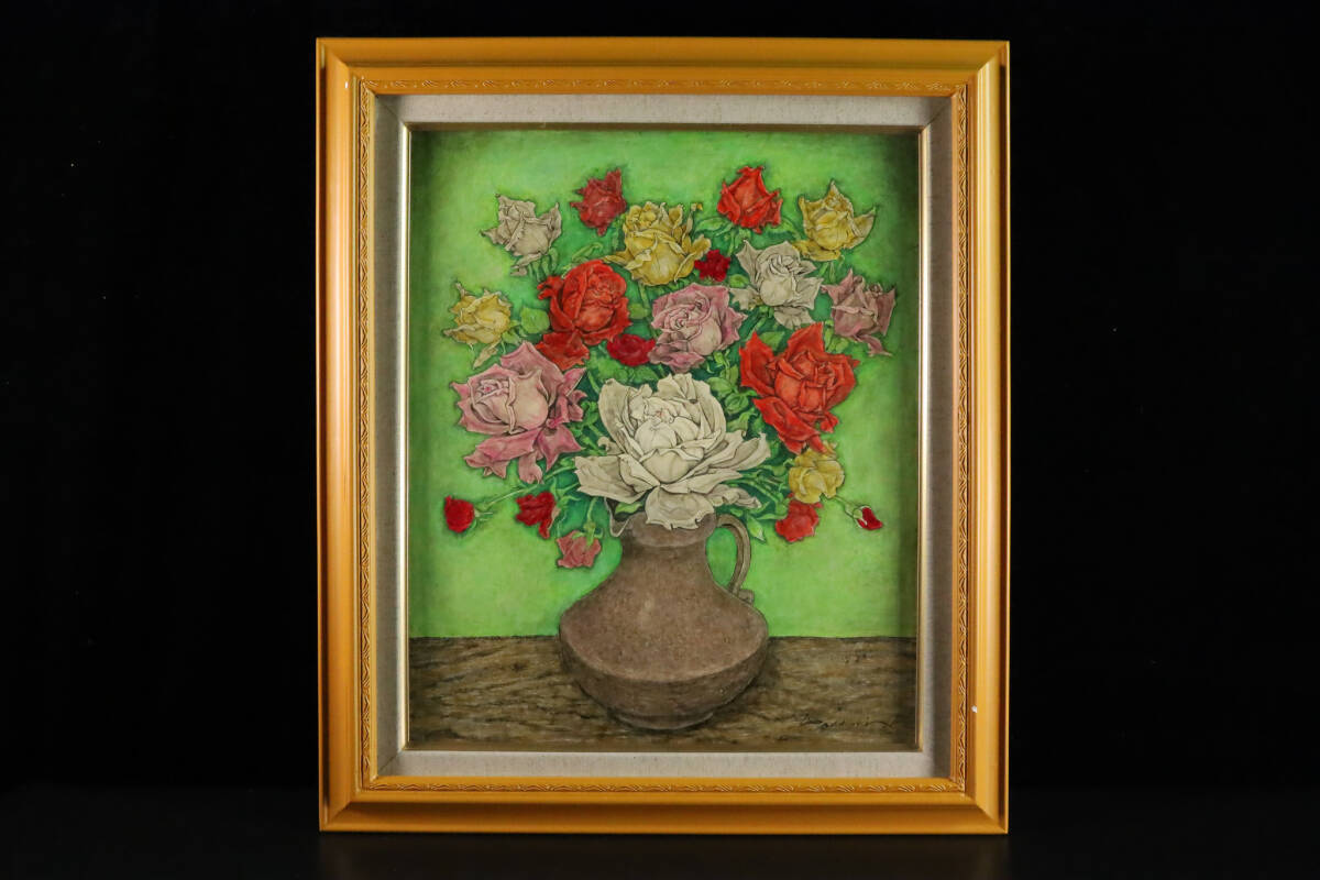 ◇雅◇ 真作保証 服部和三郎 「薔薇」 肉筆油彩 直筆サイン 裏書あり 静物画 箱付 額装 /RG.25.11 [C146] PR