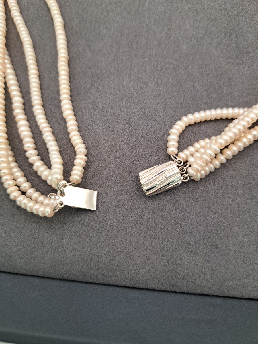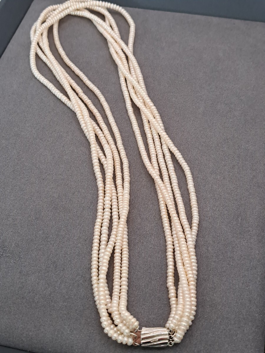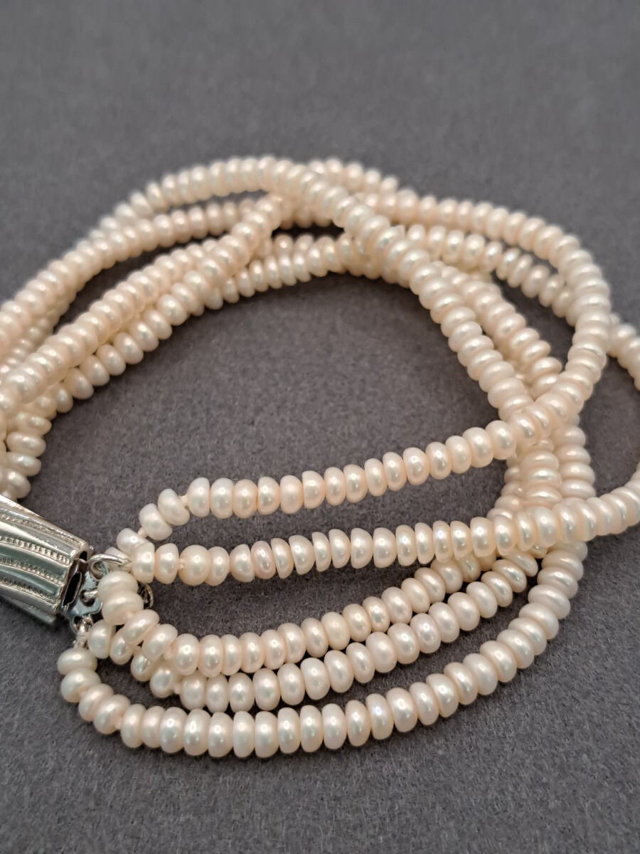 細かなパール風ビーズを複数連にした華やかなデザイン。