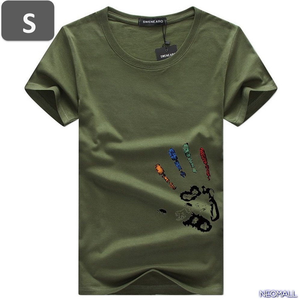 夏の定番 ☆ 丸首 半袖 Tシャツ【457】 グリーン Sサイズ トップス シャツ シンプル イラスト デザイン 春夏