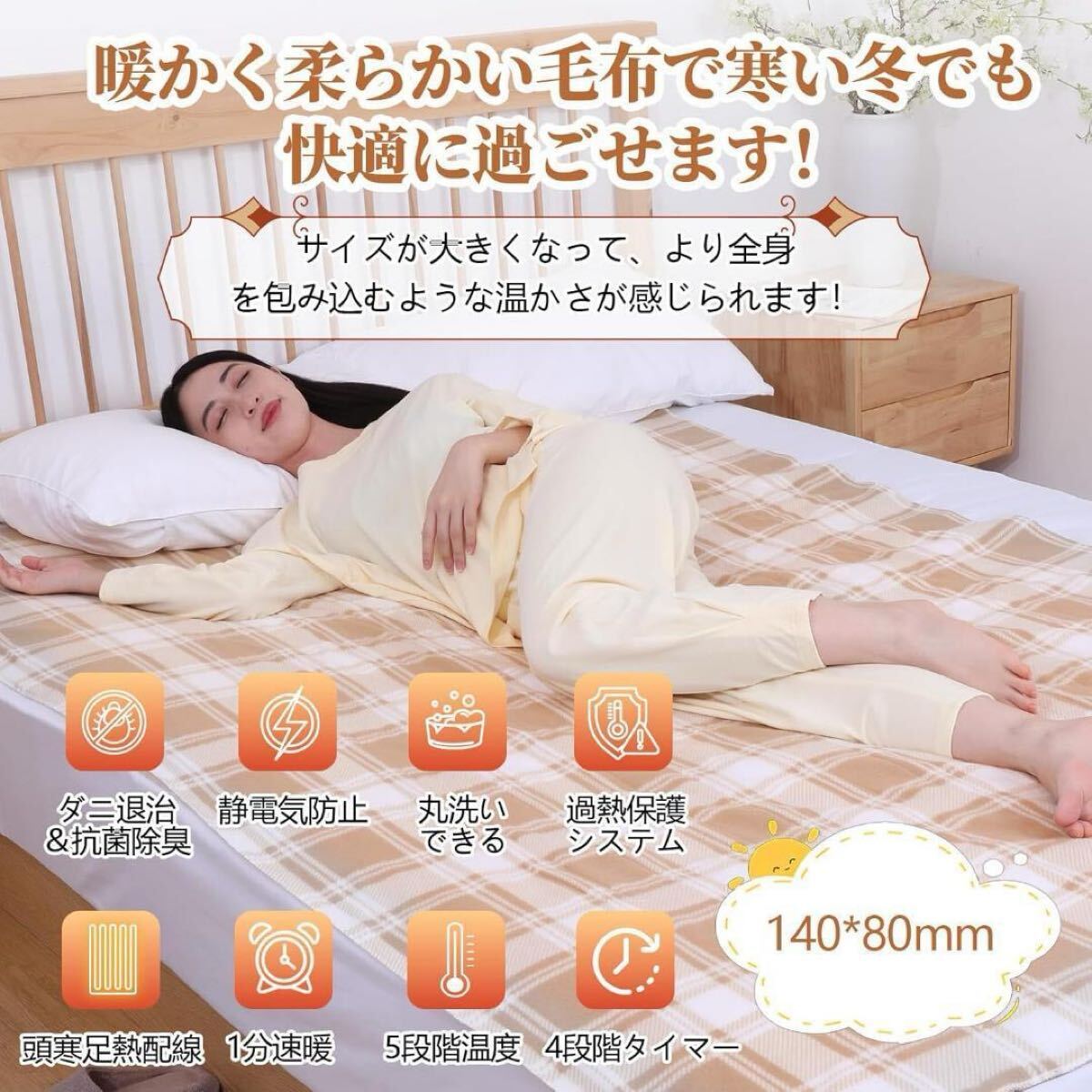 電気毛布 掛け敷き ひざ掛け 洗える タイマー付き 5段階温度 敷き2サイズ 140cm×80cm 省エネ ダニ退治 シングル 過熱保護 電気布団 電気ブランケット 3秒速暖 着る毛布 防寒 節電 アウトドア/キャンプ/車中泊/室内 プレゼント (140*80cm)
