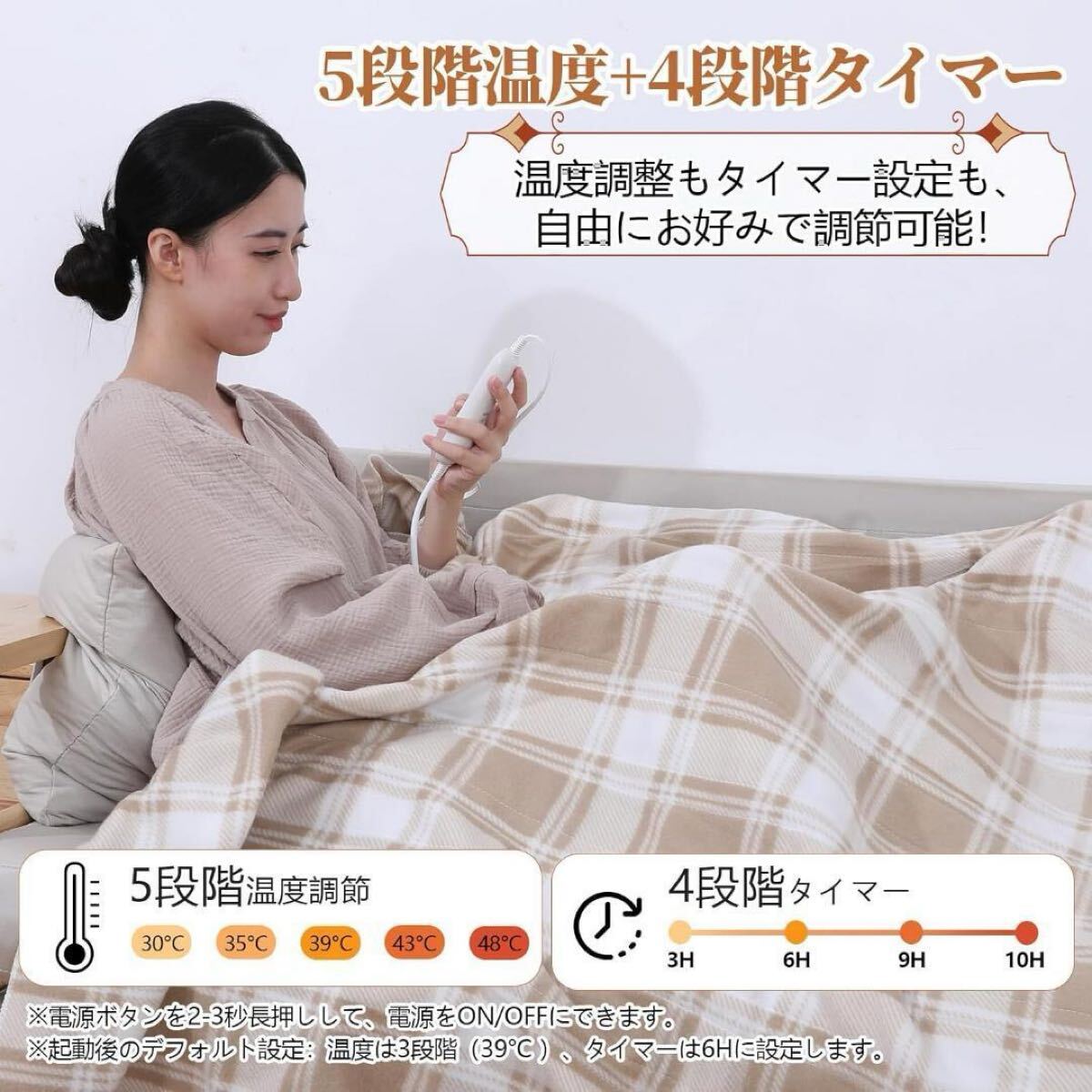 電気毛布 掛け敷き ひざ掛け 140×80㎝ 洗える タイマー付き 5段階温度
