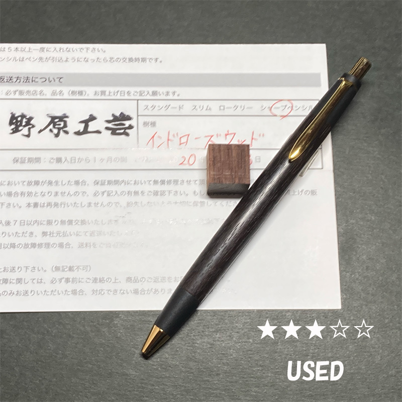 送料無料☆USED☆野原工芸 シャープペンシル インドローズウッド/木軸筆記具 シャーペン 源平 斑紋 伝統工芸 ステーショナリー★4Pen