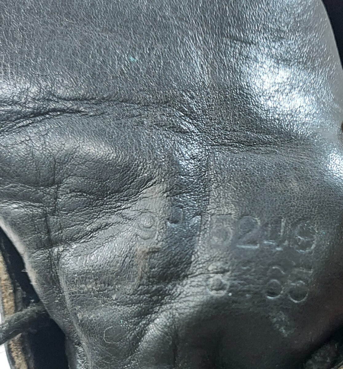 ワックスと思われる黒ずみがソールサイドや糸に付着しています。
