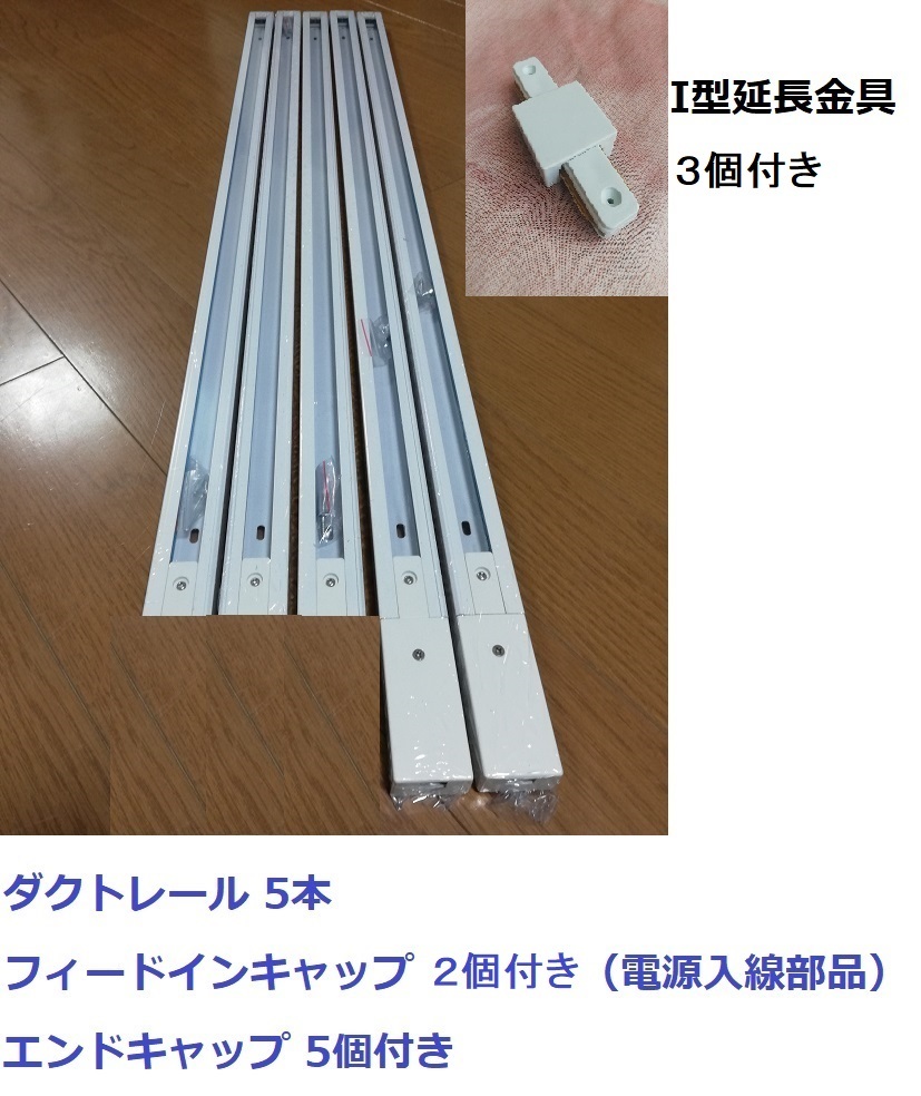 ☆超お得 配線ダクトレール スポットライト用 5本W フィードインキャップ2個付き I型延長金具3個付 ライティングレール 照明器具 TDR-90W
