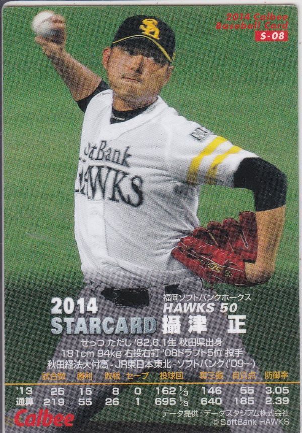 ●2014カルビー/第1弾 【攝津 正】 スターカード No.S-08:ソフトバンク